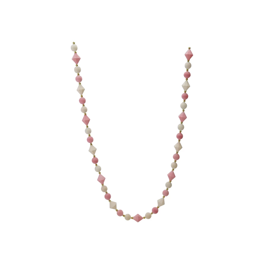 Flocked Glass Ornament Garland, Gold Finish, Pink & Cream Color