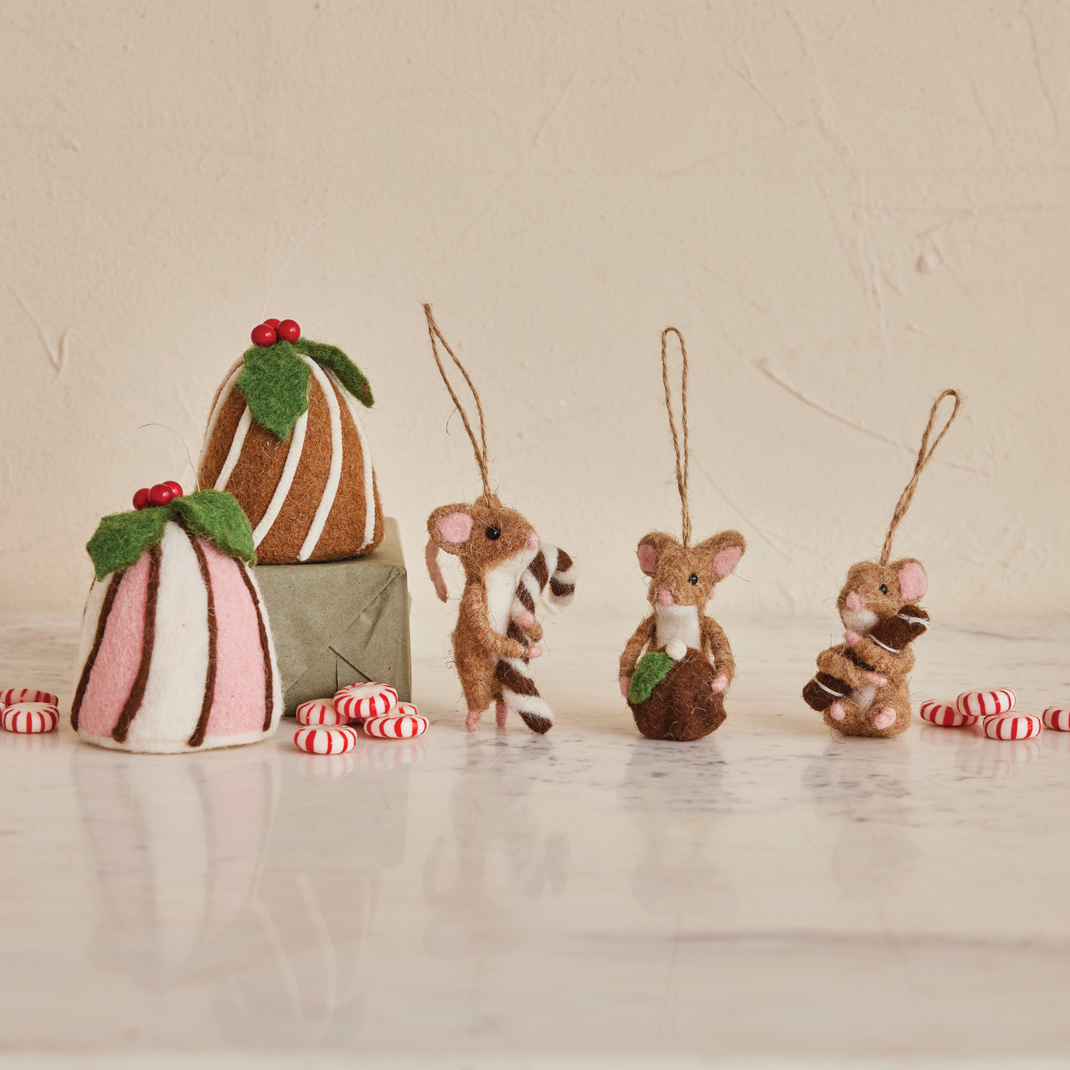 Handmade Wool Felt Mouse Ornament, Brown, 3 Styles