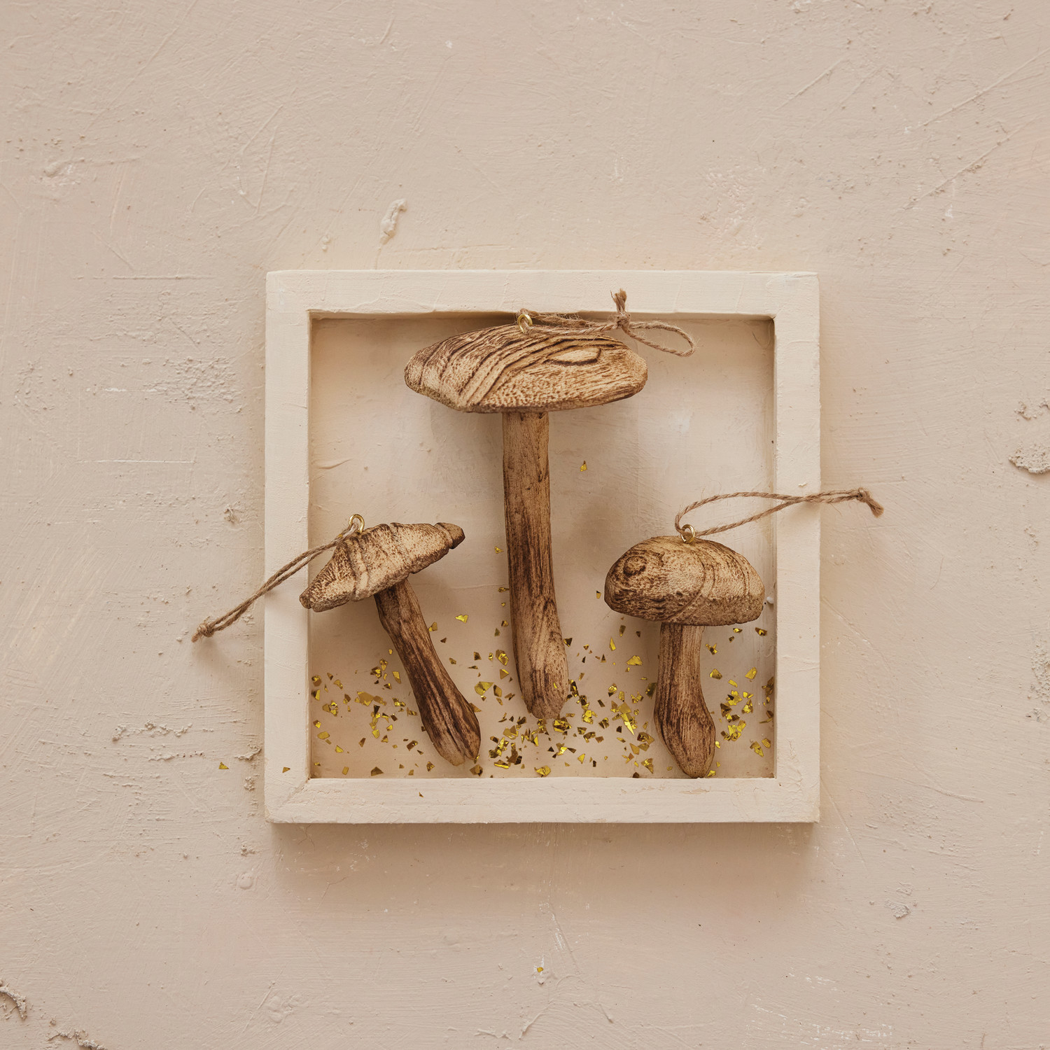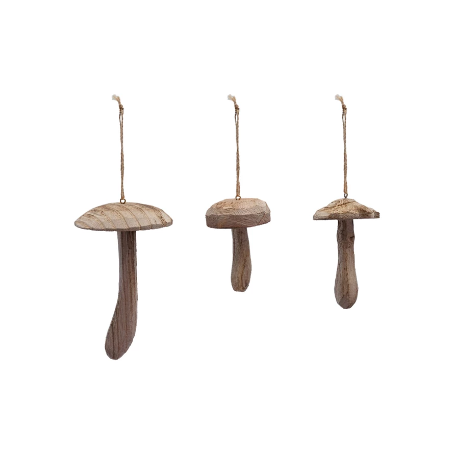 Paulownia Wood Mushroom Ornament, Natural, 3 Styles