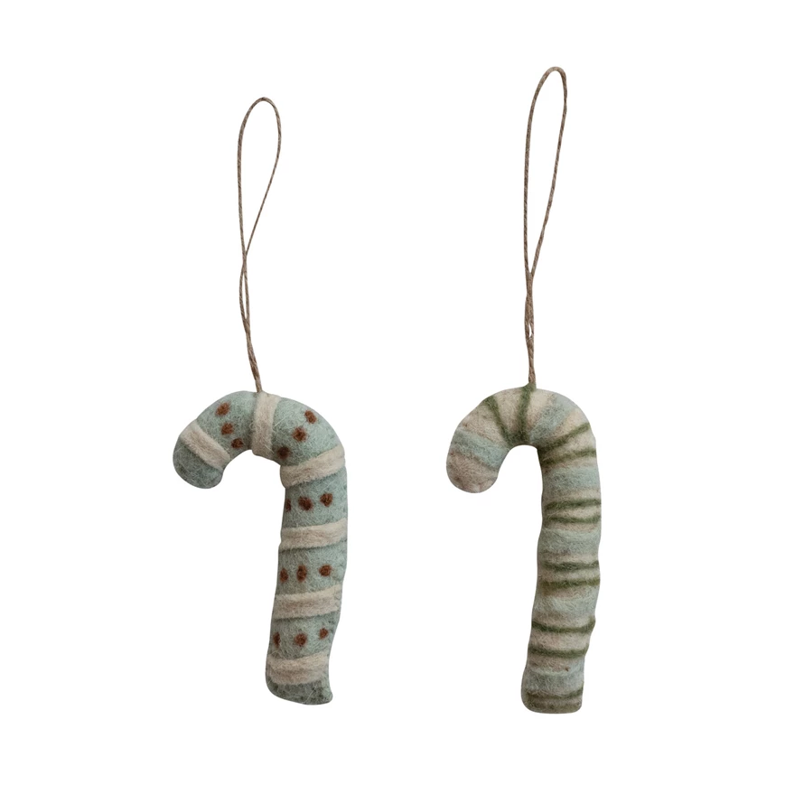 4-1/2"H Handmade Wool Felt Candy Cane Ornament, 2 Styles ©