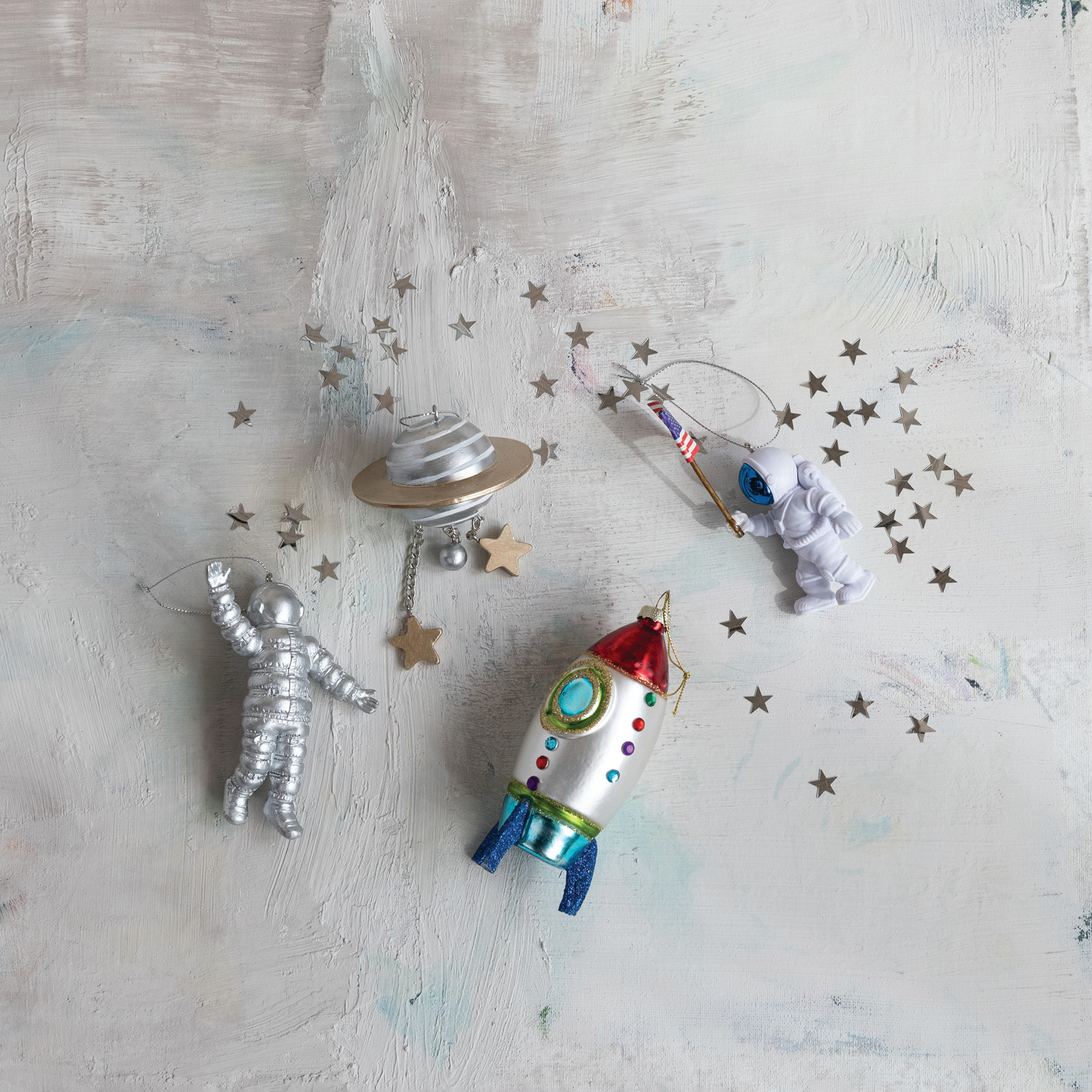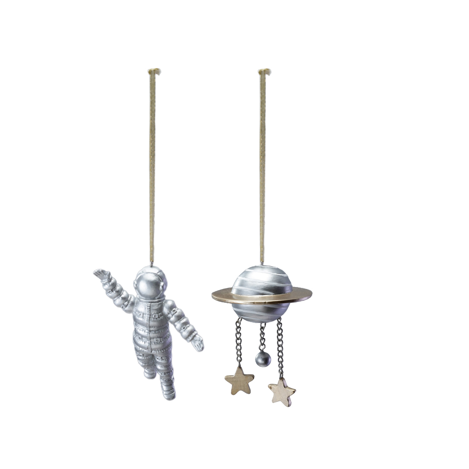 Resin Astronaut/Planet Ornament, Silver & Gold Finish, 2 Styles