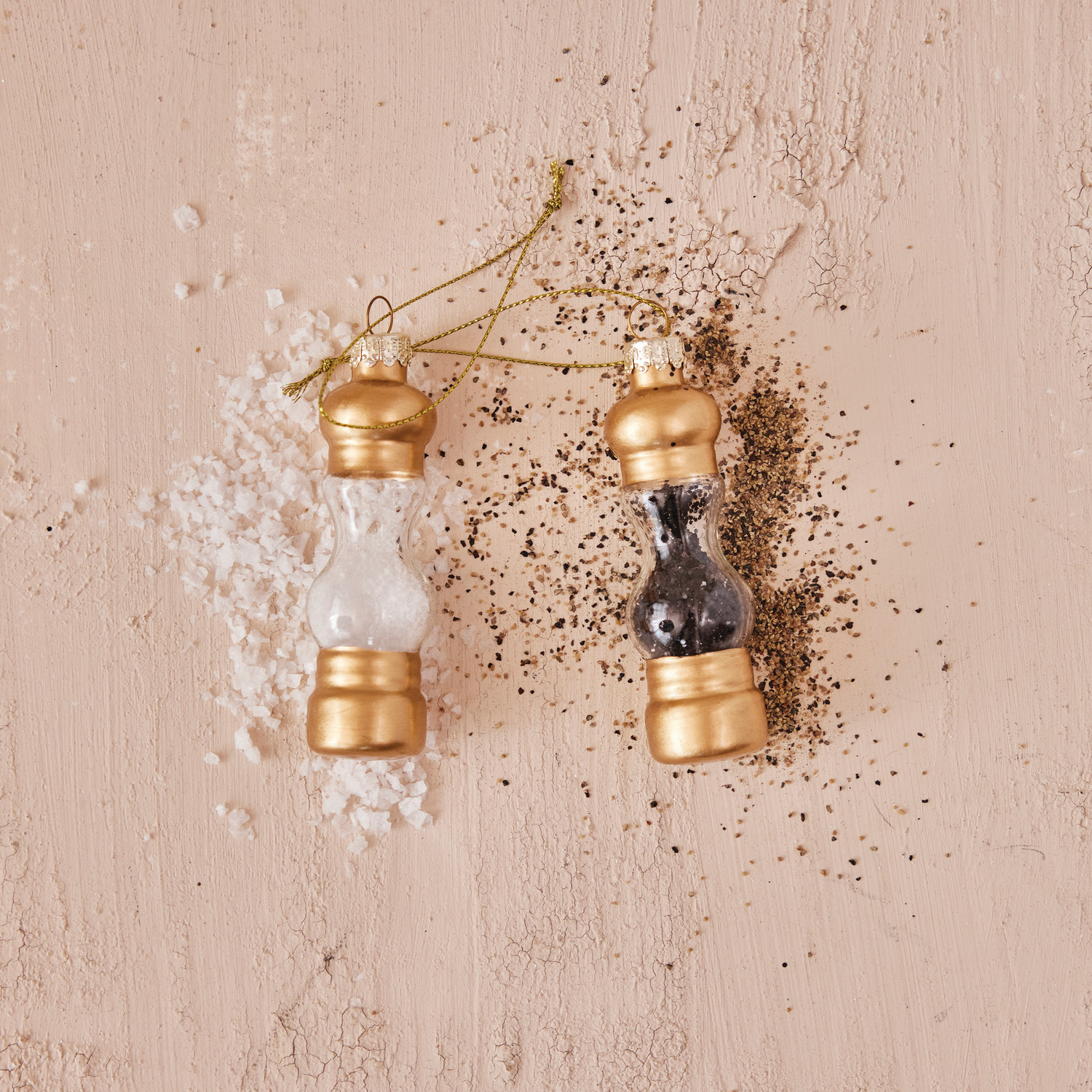 Catalog Name: 3-3/4"H Glass Salt/Pepper Mill Ornament, Gold Finish, 2 Styles