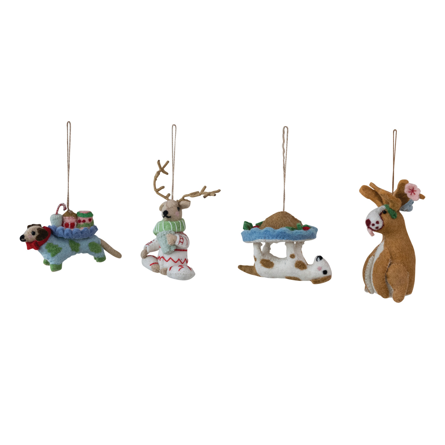 Catalog Name: 4-1/2"L Handmade Wool Felt Dog Ornament w/ Holiday Treats, Multi Color, 4 Styles ©