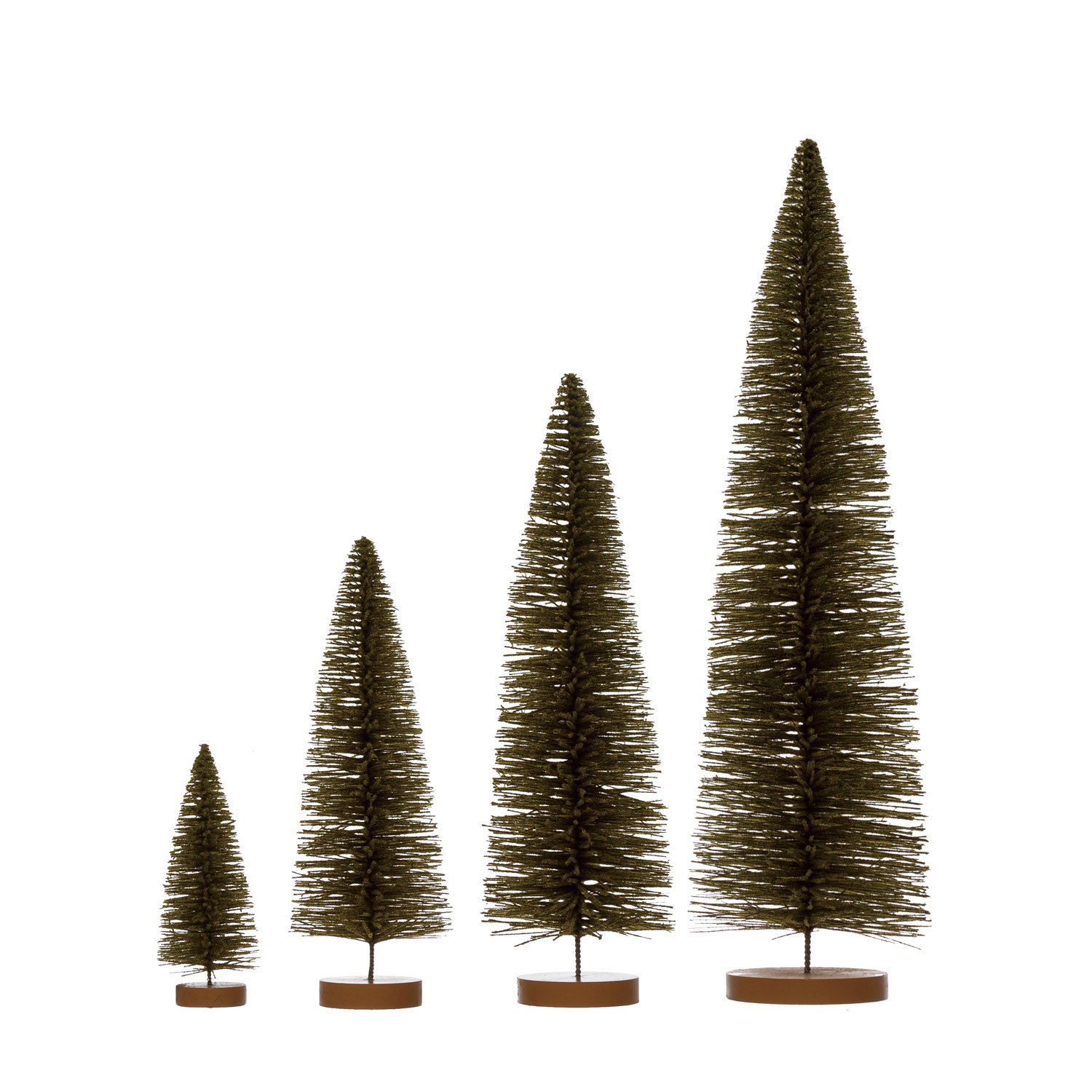 Catalog Name: 4" Round x 11-3/4"H Flocked Plastic Bottle Brush Tree with Wood Base, Green