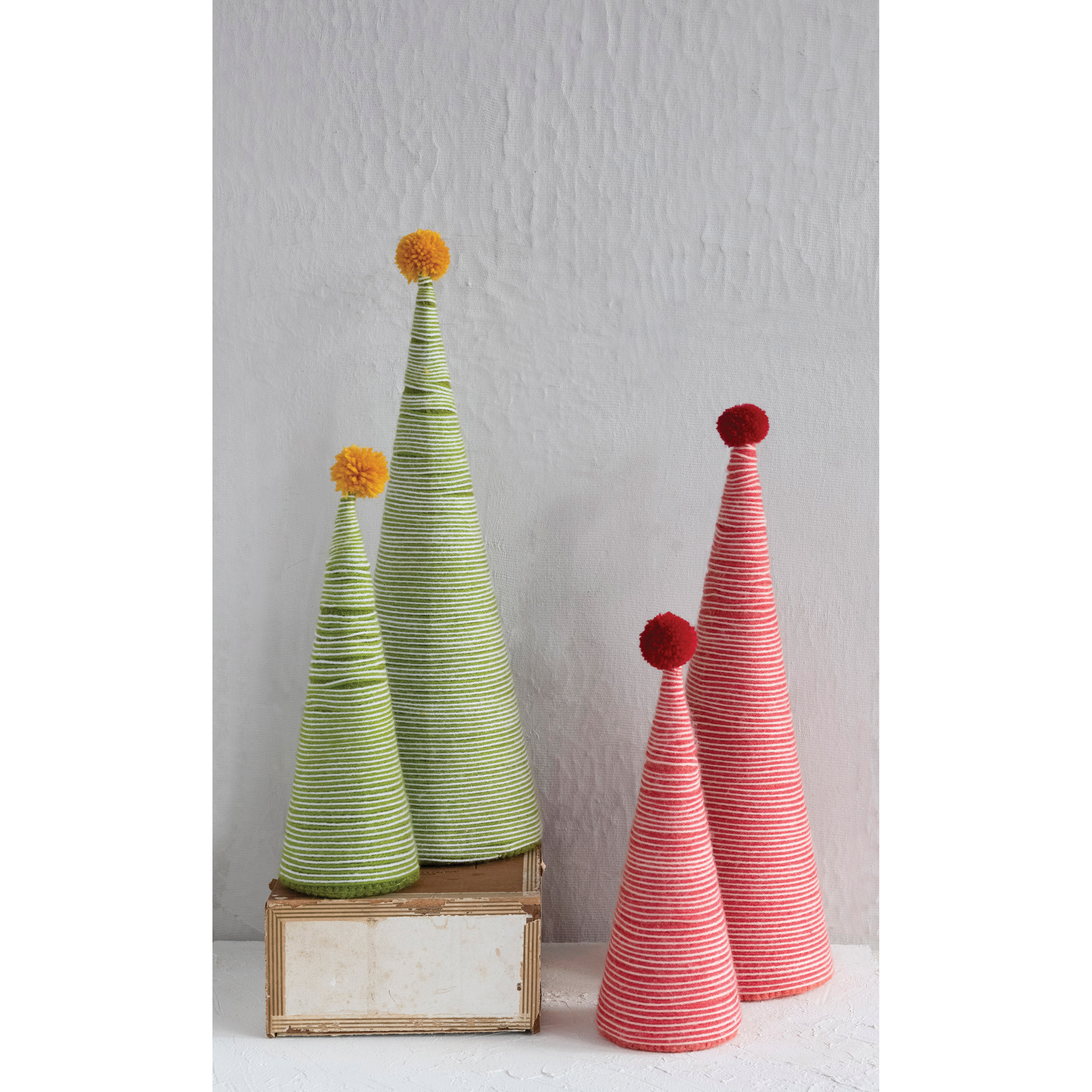 5" Round x 15"H Wool Yarn Wrapped Tree with Pom Pom, Red