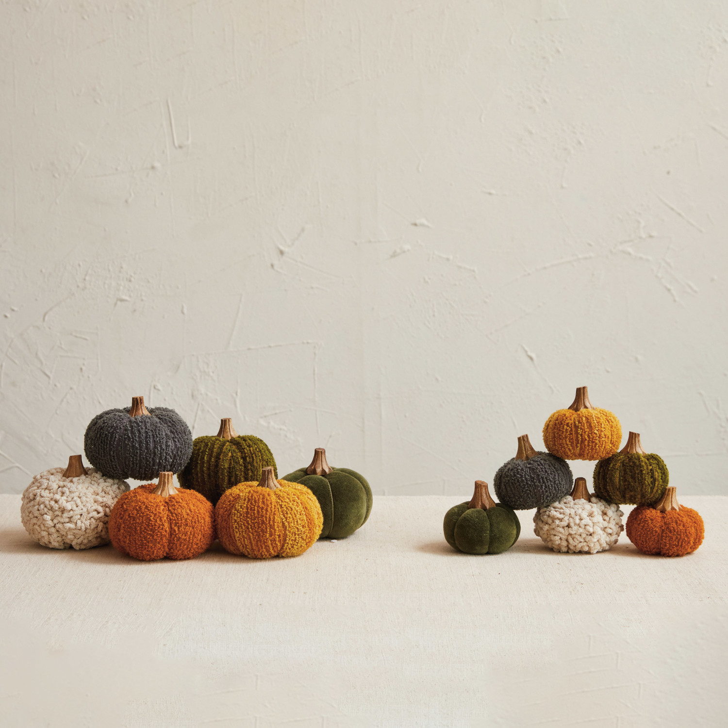 Cotton Blend Bouclé/Velvet Pumpkin w/ Wood Stem, 6 Styles