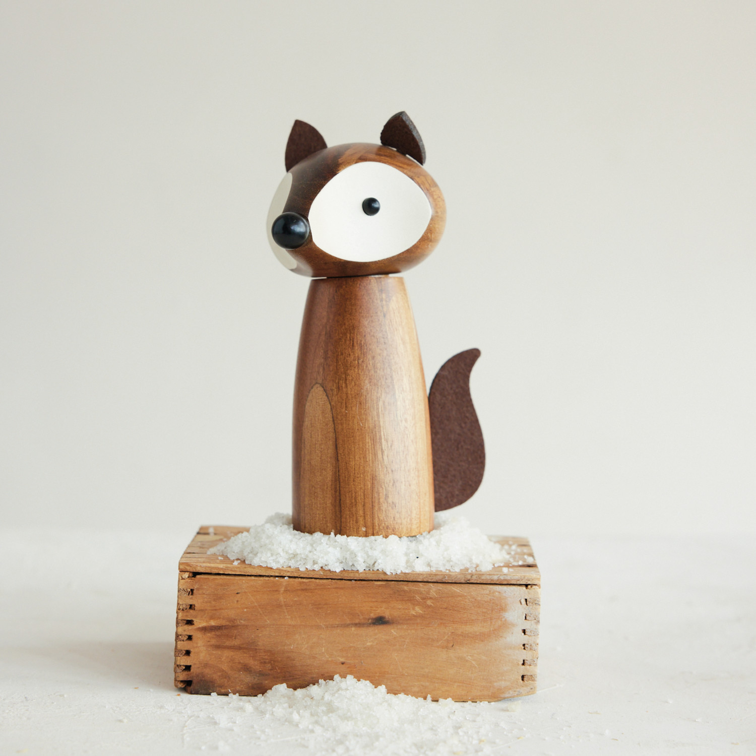 Acacia Wood Fox Shaped Salt/Pepper Mill with Faux Leather Ears & Tail