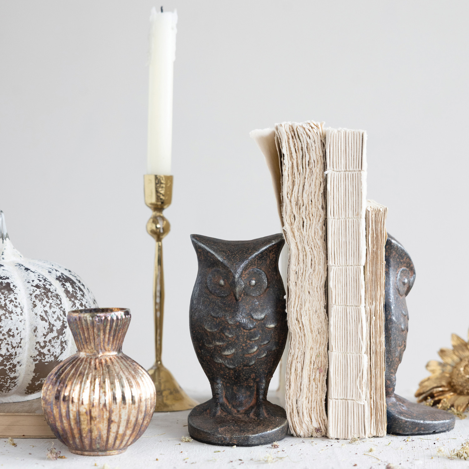 Catalog Name: 2-1/4"L x 3"W x 6-1/4"H Cast Iron Owl Shaped Bookends, Set of 2