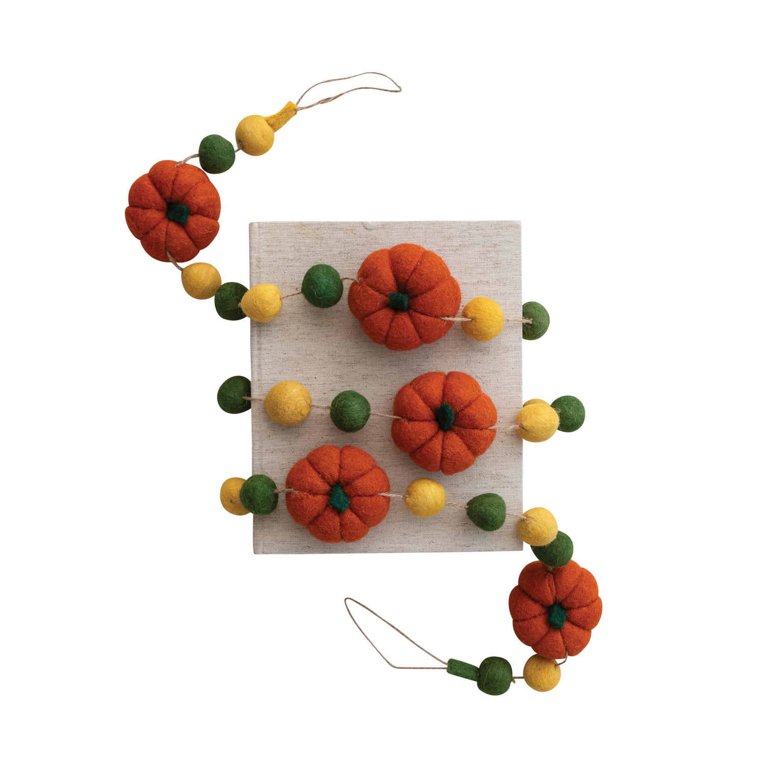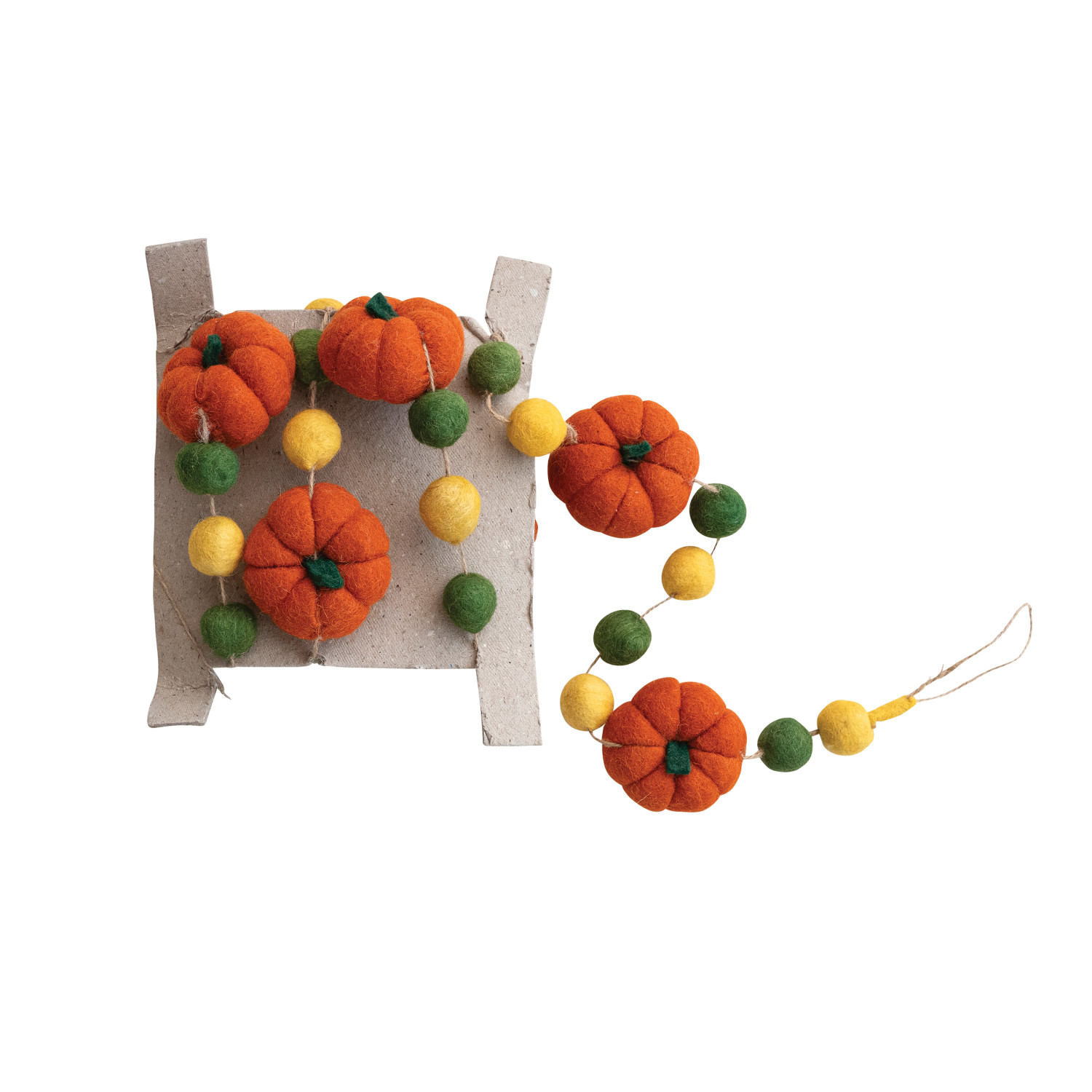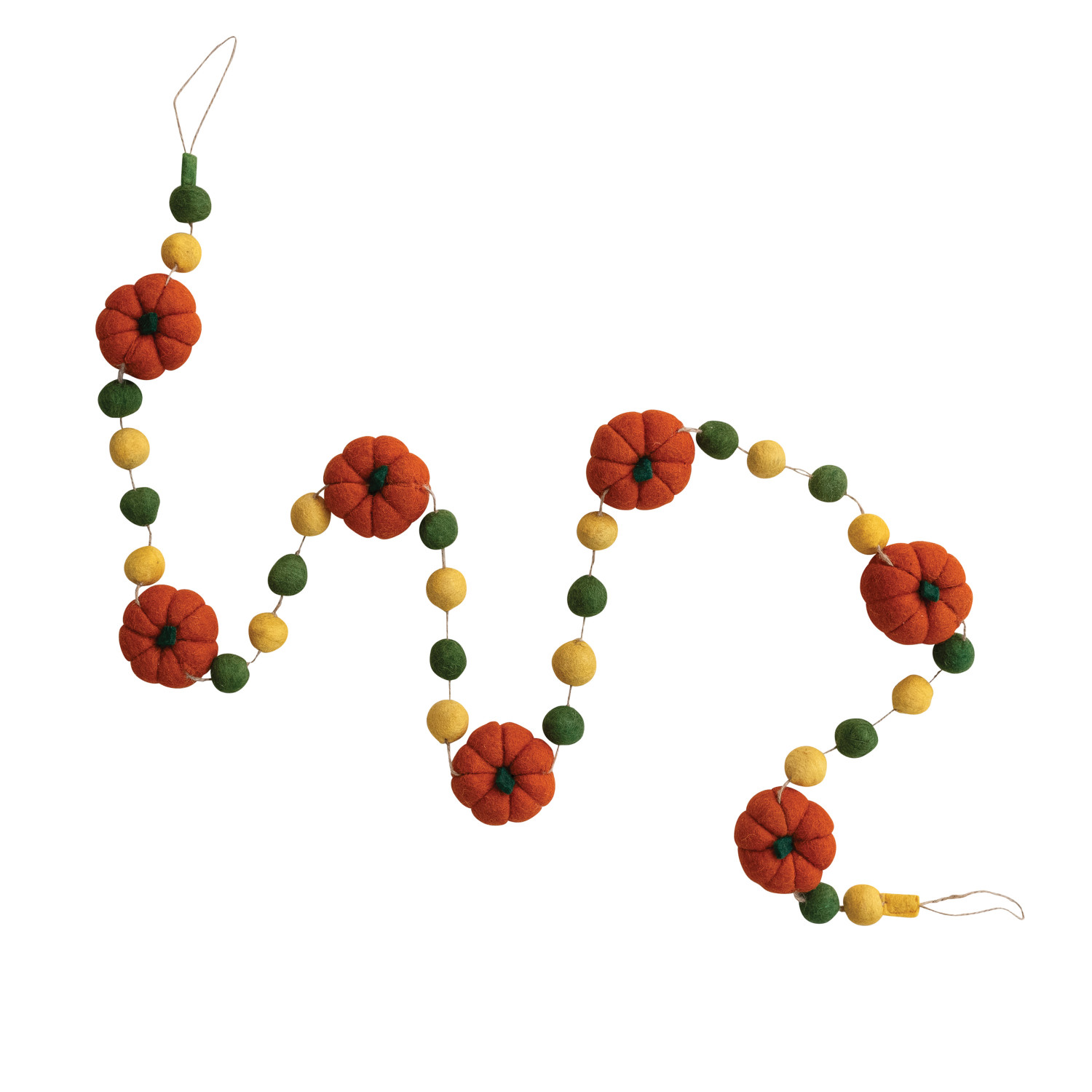 Catalog Name: 72"L x 3"H Handmade Wool Felt Pumpkin & Ball Garland w/ Jute Cord, Orange, Mustard Color & Green