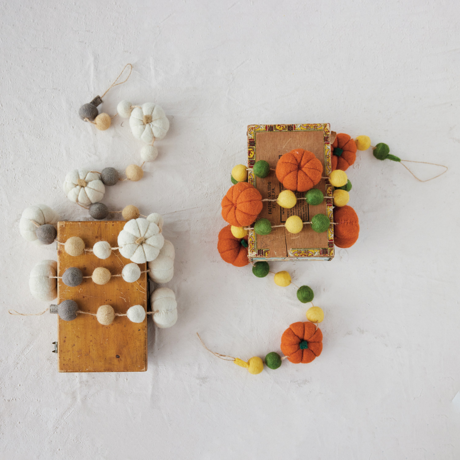 Handmade Wool Felt Pumpkin & Ball Garland with Jute Cord, Orange, Mustard Color & Green