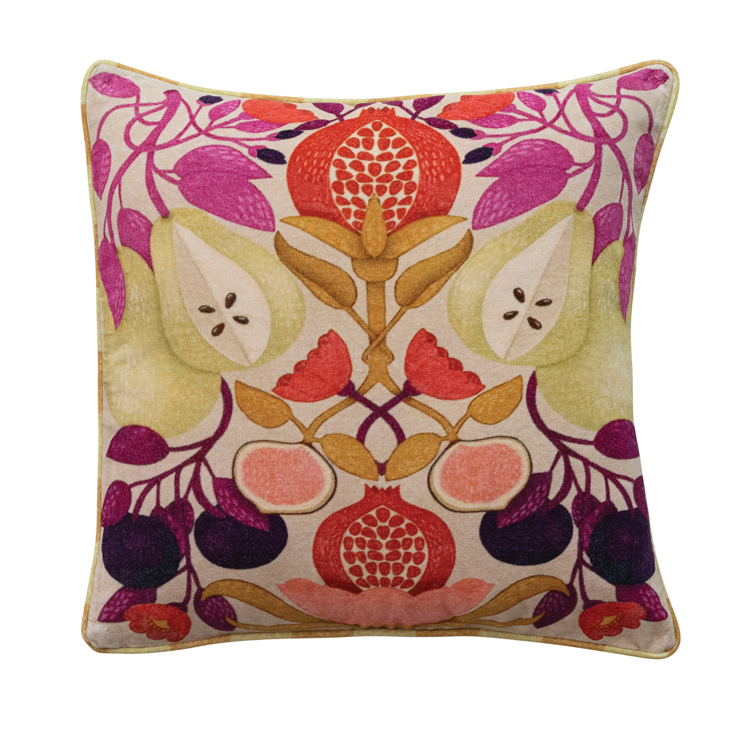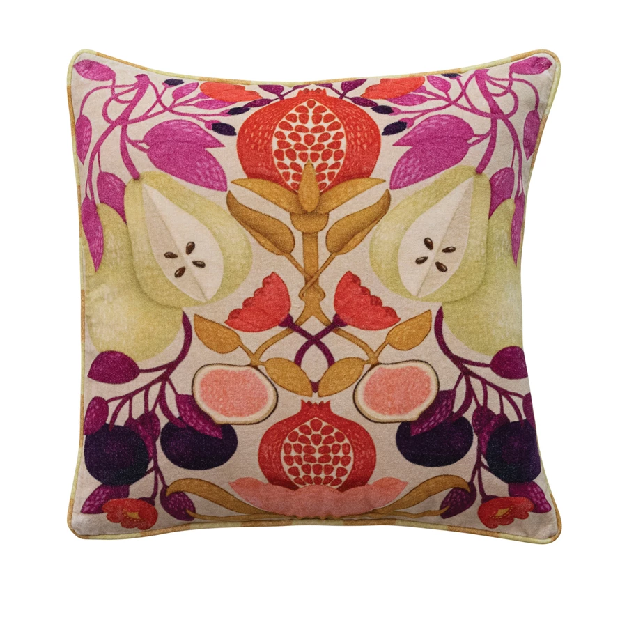 Catalog Name: 20" Square Cotton Velvet Printed Pillow w/ Seasonal Fruit Pattern, Piping & Striped Back, Multi Color