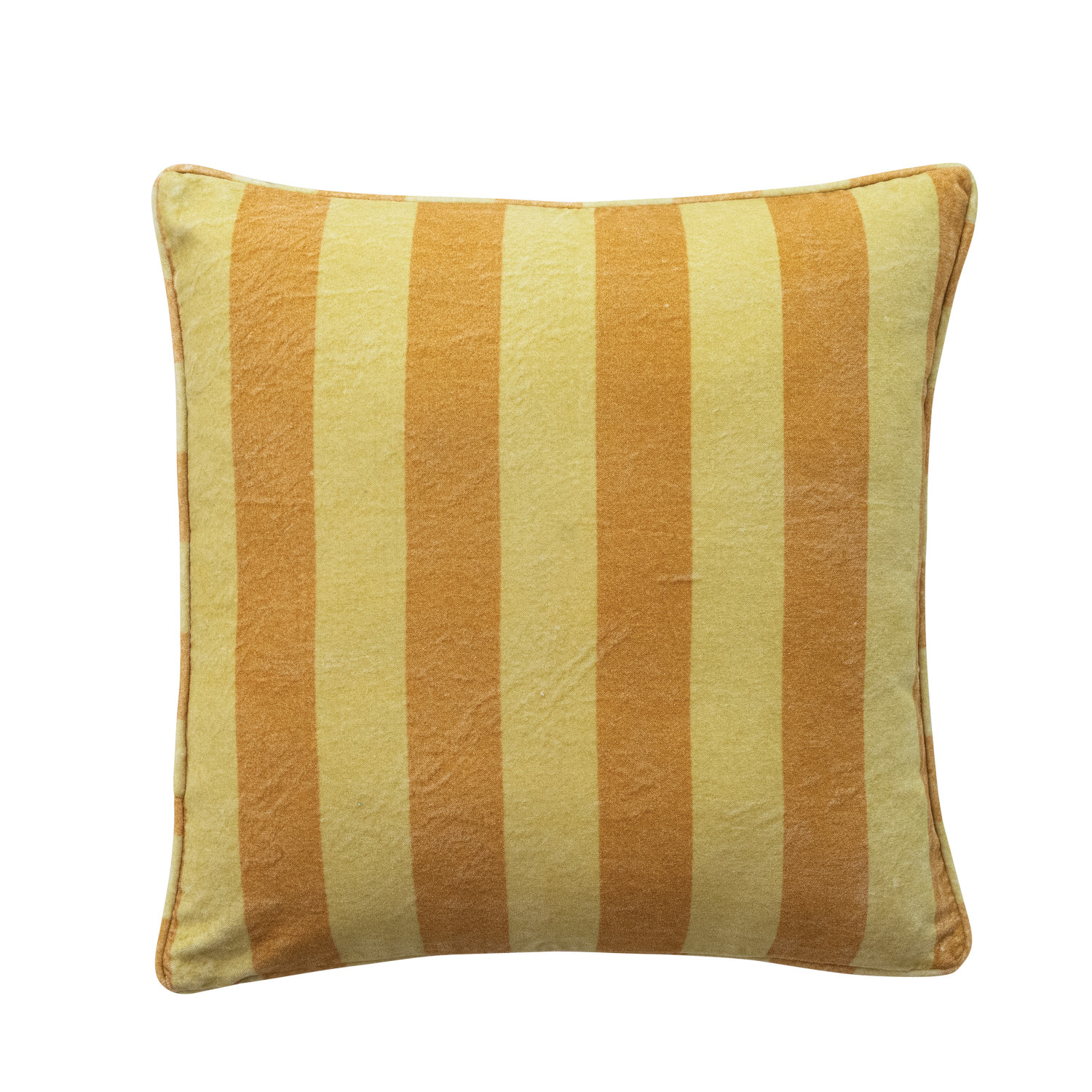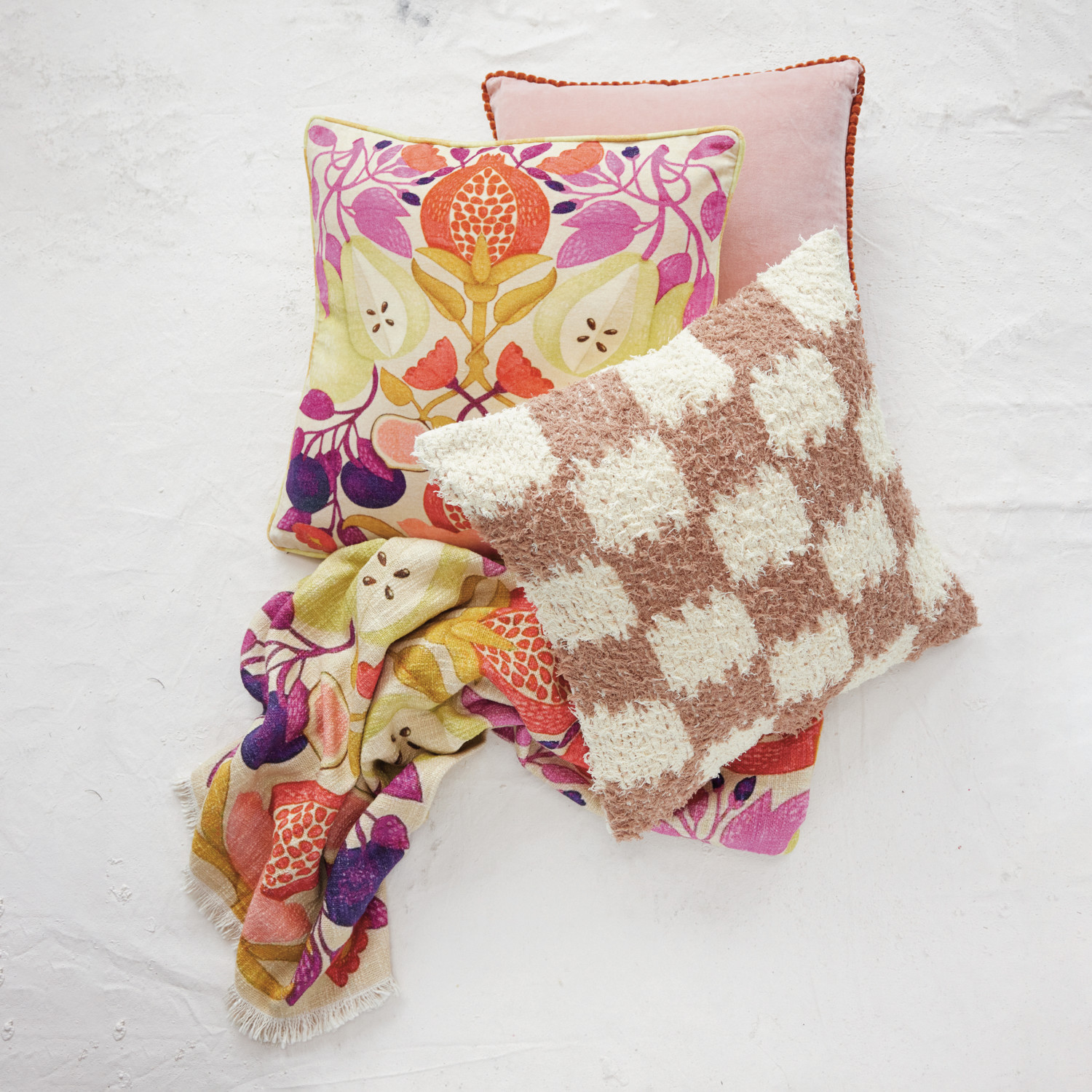 20" Square Cotton Velvet Printed Pillow with Seasonal Fruit Pattern, Piping & Striped Back