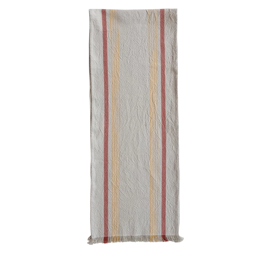 Woven Cotton Striped Table Runner with Eyelash Fringe