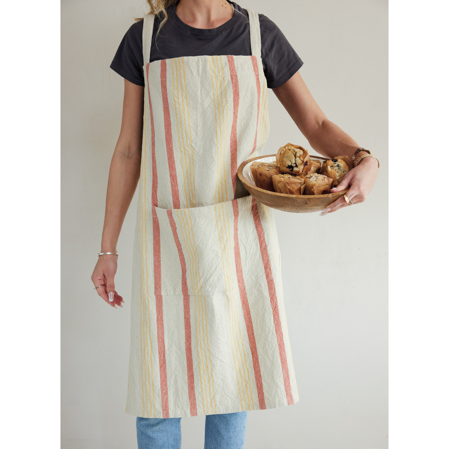 Woven Cotton Striped Apron with Pocket