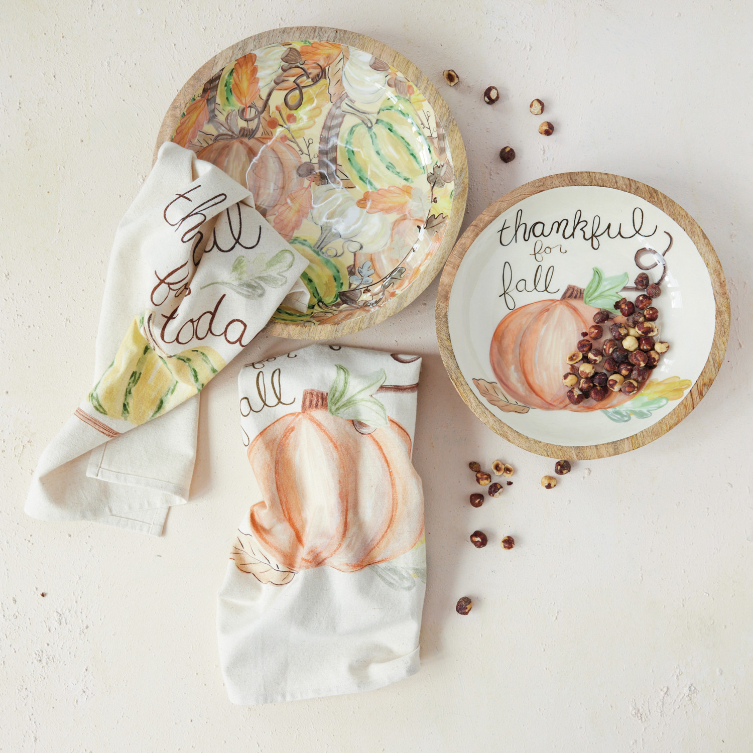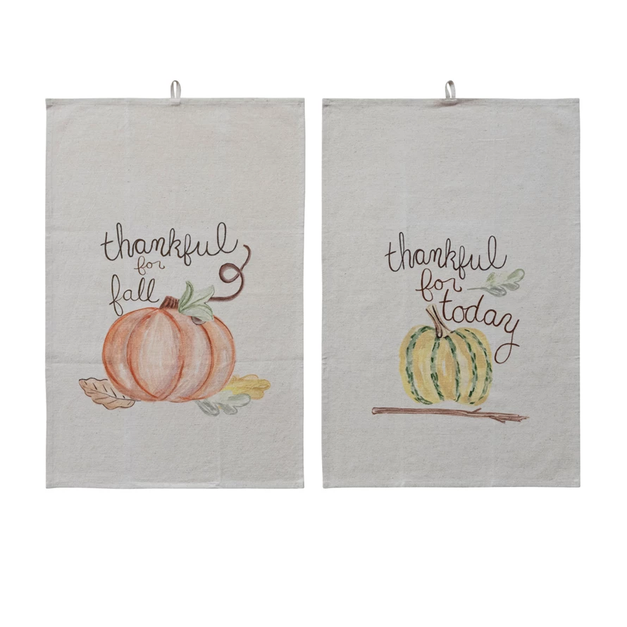 Catalog Name: 28"L x 18"W Cotton & Linen Printed Tea Towel w/ Pumpkin "Thankful For Fall"/"Thankful For Today", Multi Color, 2 Styles ©