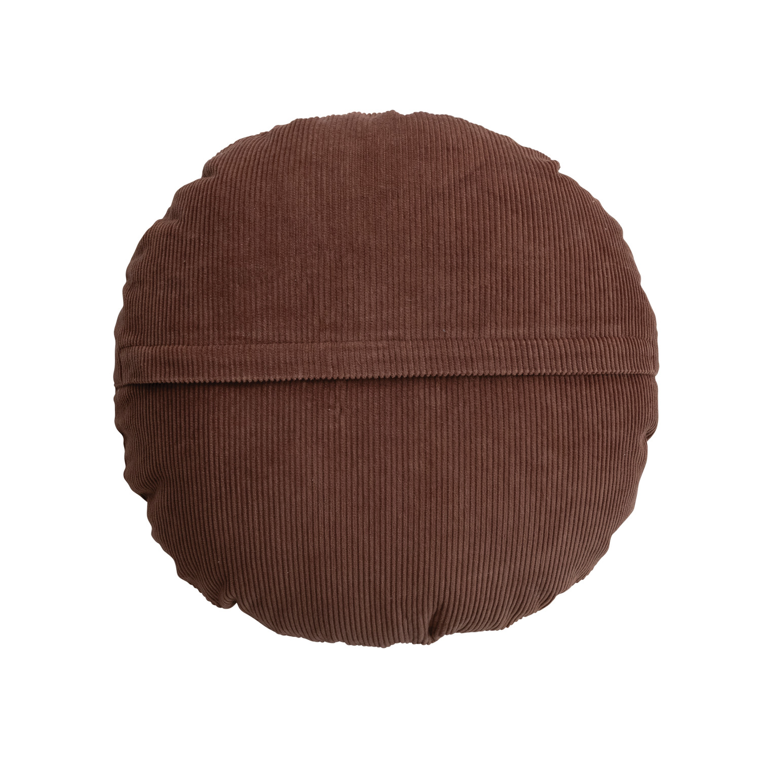 16" Round Cotton & Linen Printed Pillow with Embroidery & Corduroy Back ©
