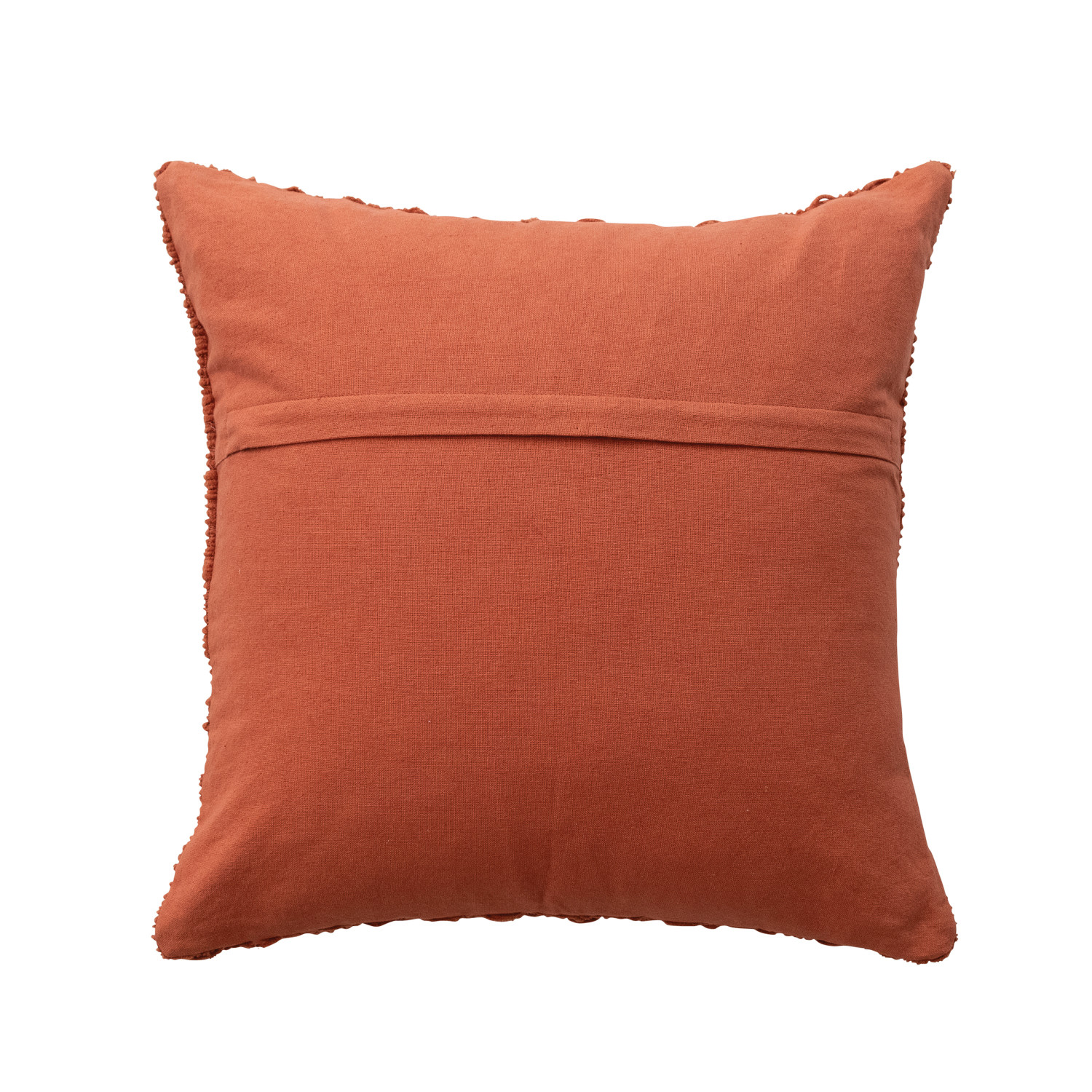 18" Square Woven Fabric Chenille Waffle Weave Pillow with Cotton Back, Rust Color
