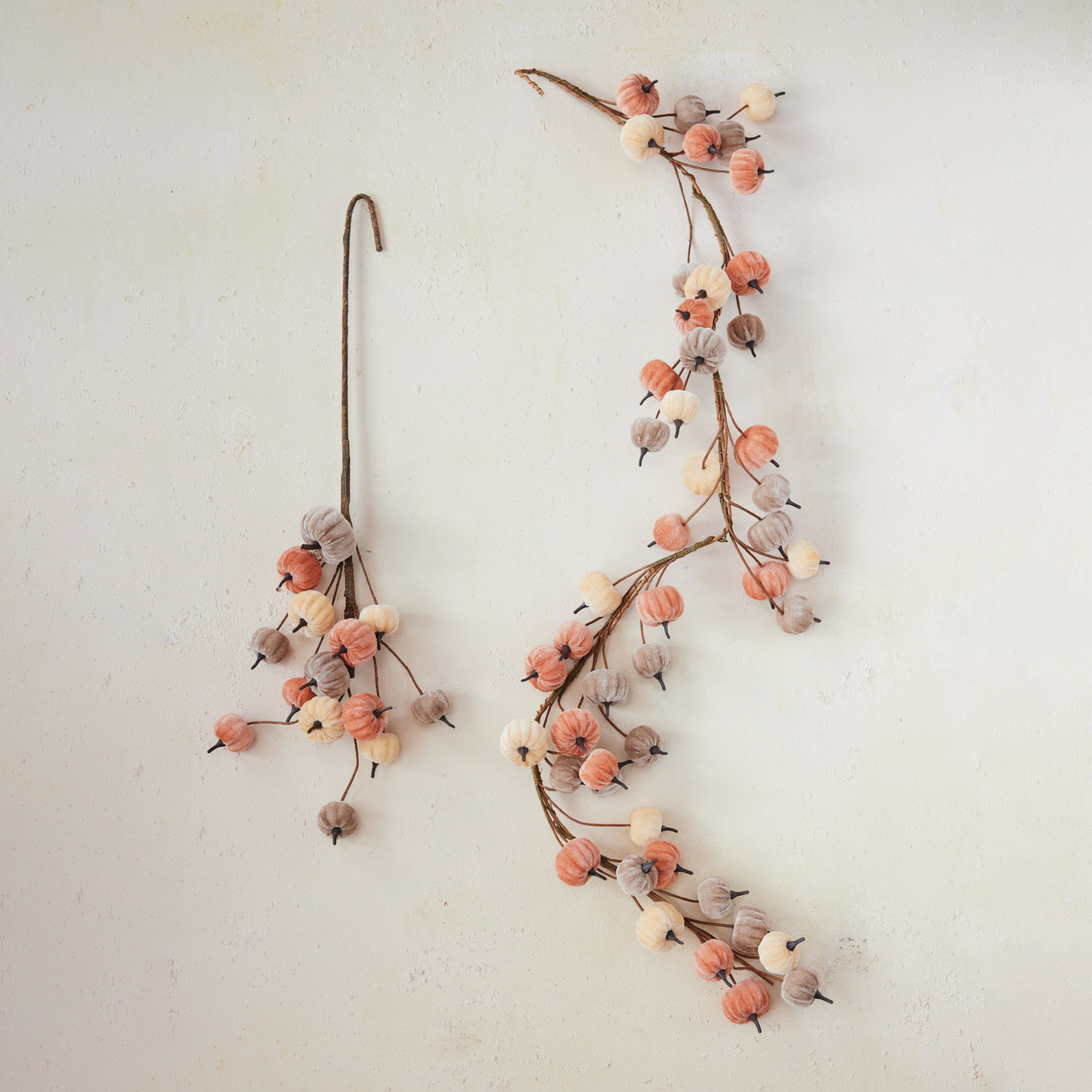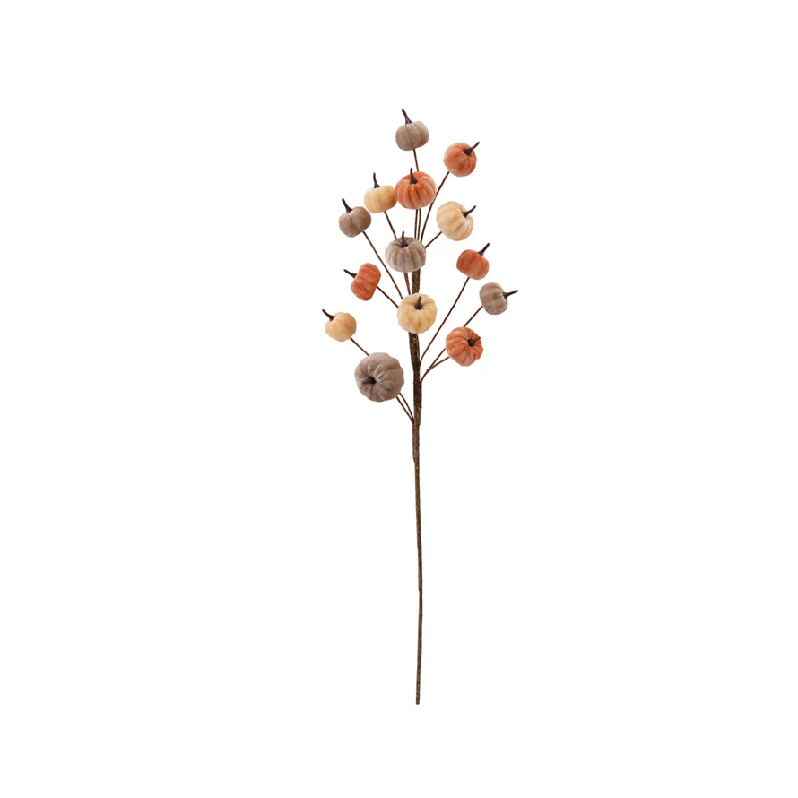 Catalog Name: 34"H Foam & Velvet Pumpkin Stem, Tan, Orange & Cream Color
