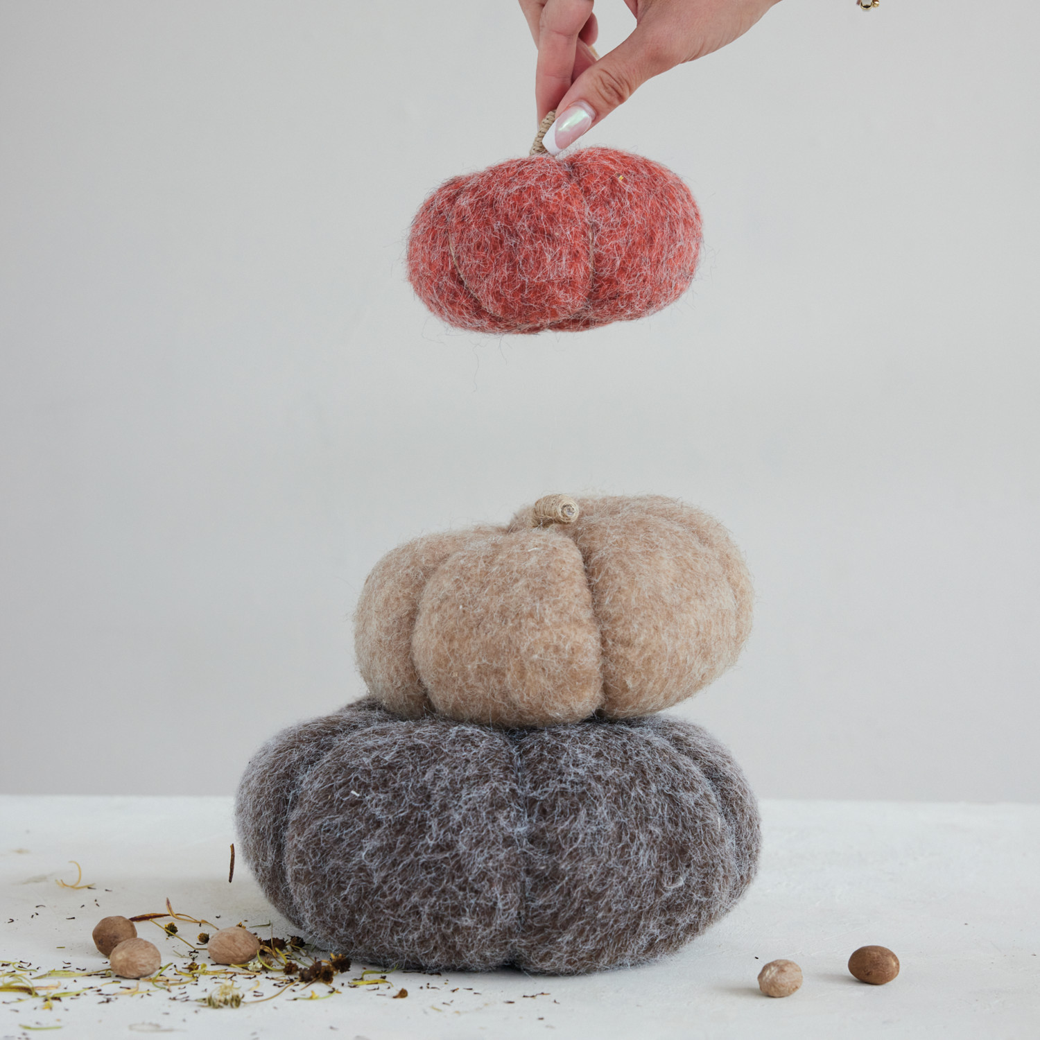 Felt Pumpkin with Jute Wrapped Stem, Brown