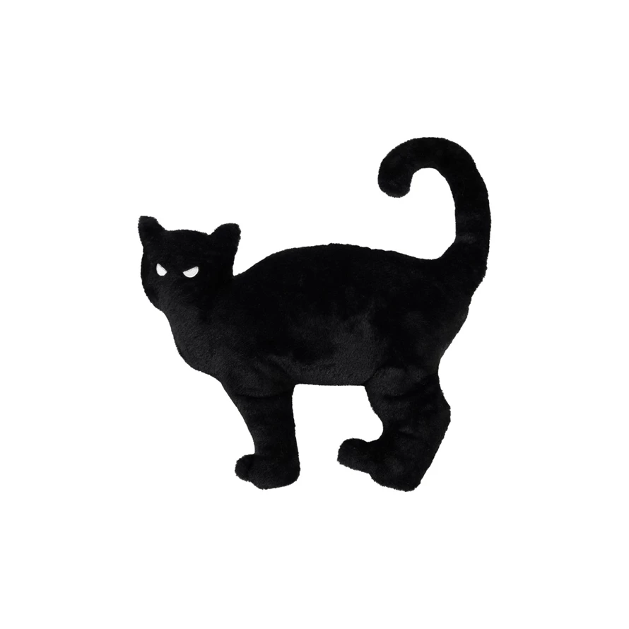 Faux Fur Cat Shaped Pillow, Black