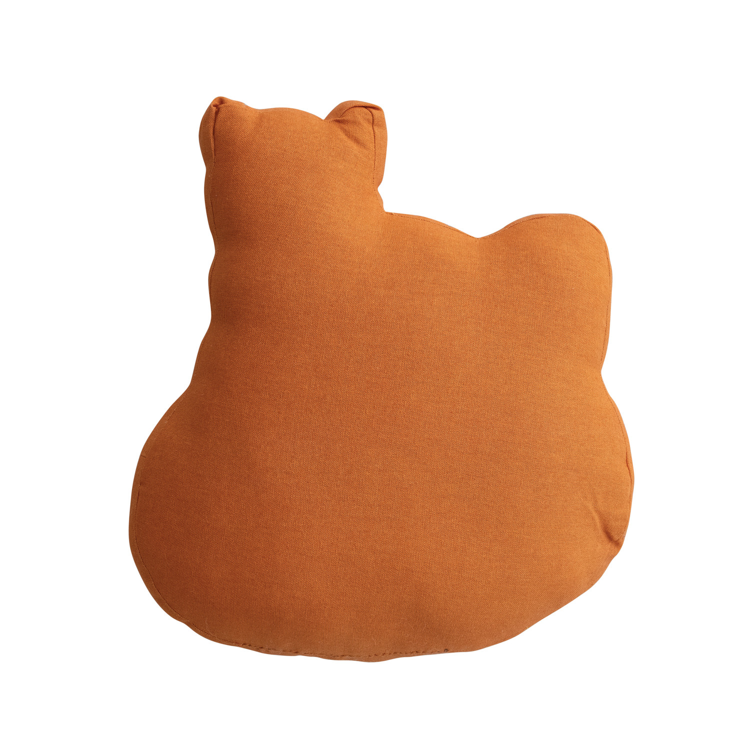 Cotton Slub Printed Black Cat on Jack-O-Lantern Shaped Pillow with Embroidery & Beads