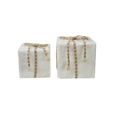 Fabric Blend Boucle Lumbar Pillow with Beads, Piping & Striped Back