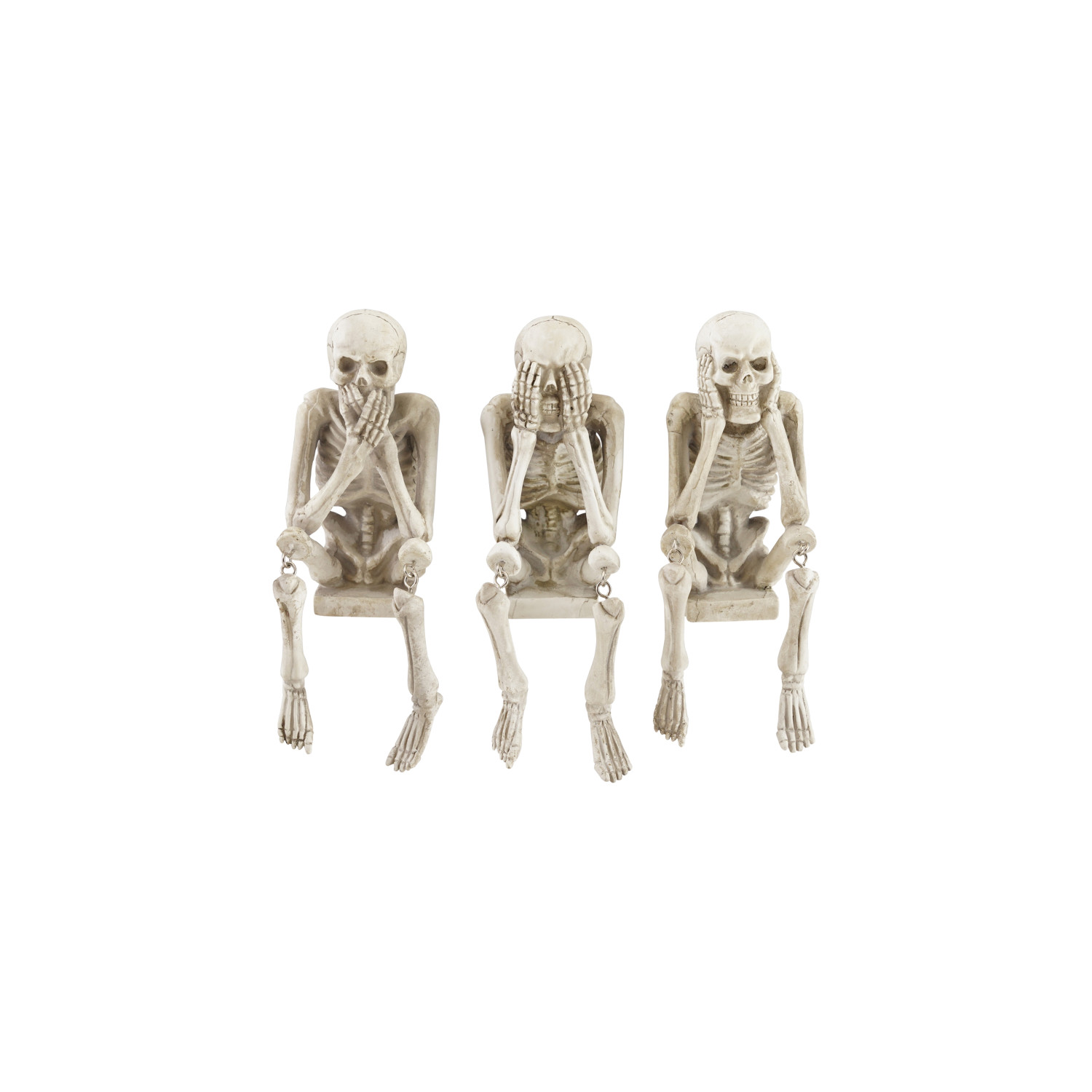 Resin See/Hear/Speak No Evil Skeleton Shelf Sitter, Bone Finish, 3 Styles