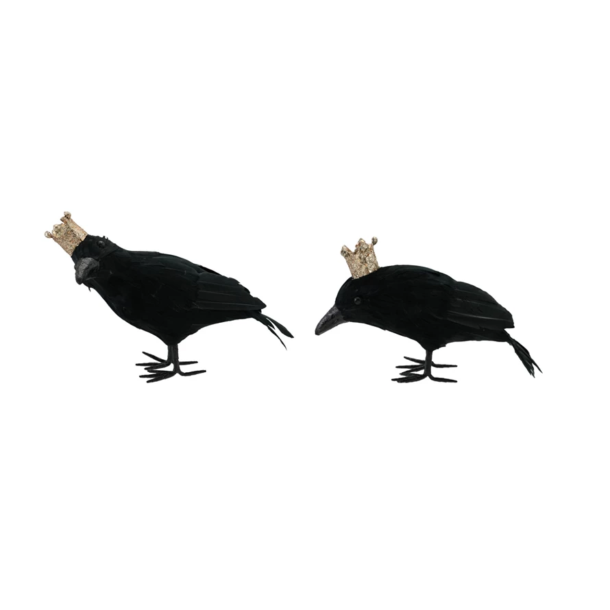 Foam Crow with Feathers & Crown, Black & Gold Glitter Finish, 2 Styles