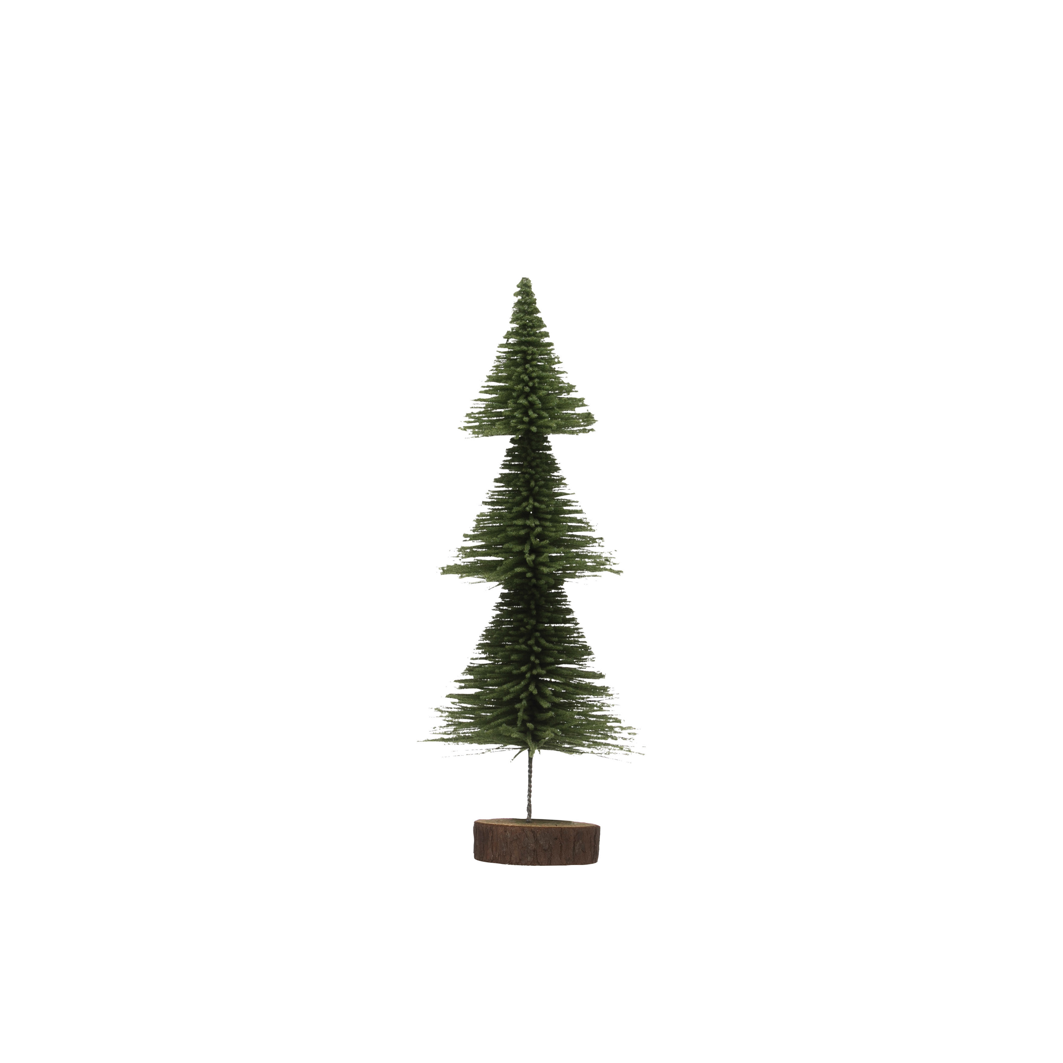 Catalog Name: 4-1/2" Round x 12"H Sisal Bottle Brush Tree with Wood Slice Base, Green
