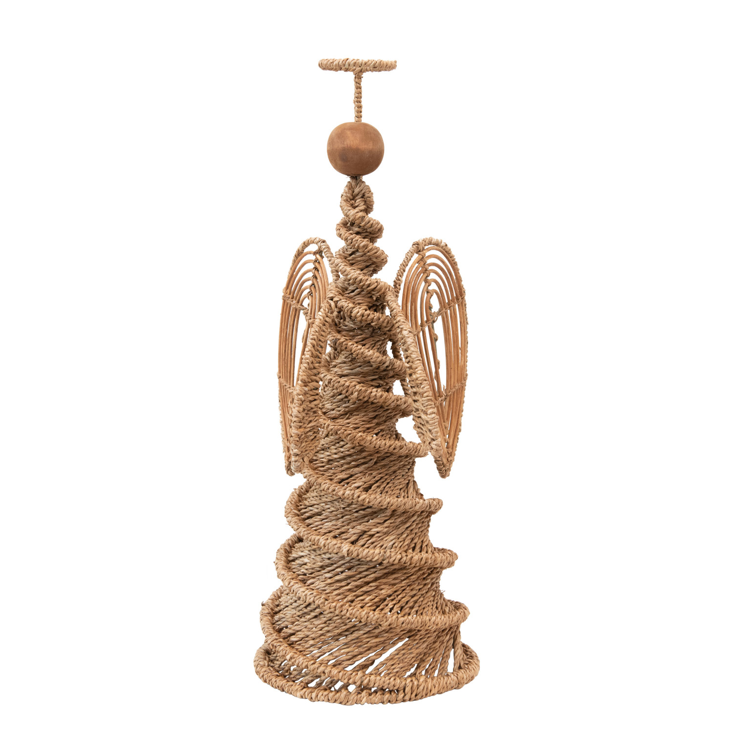 This festive angel is a beautiful way to decorate for the holiday season. Made with bankuan rope, this hand-woven angel has a spiral cone shape with a natural finish. This decoration instantly elevates any table tops or shelves, and blends in with any decor styles.