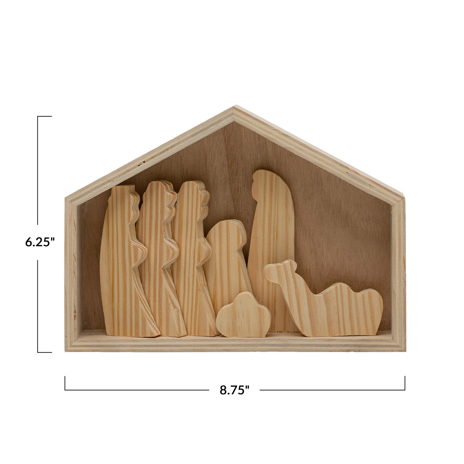 Catalog Name: 8-3/4"L x 1-3/4"W x 6-1/4"H Pine Wood & MDF Nativity, Natural, Set of 8