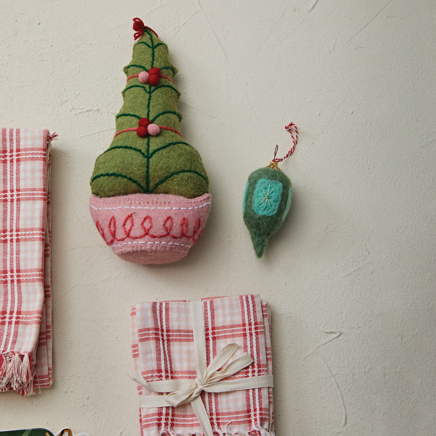 Catalog Name: 5"L x 3"W x 10-1/2"H Handmade Wool Felt Tree w/ Embroidery & Pom Poms, Multi Color ©