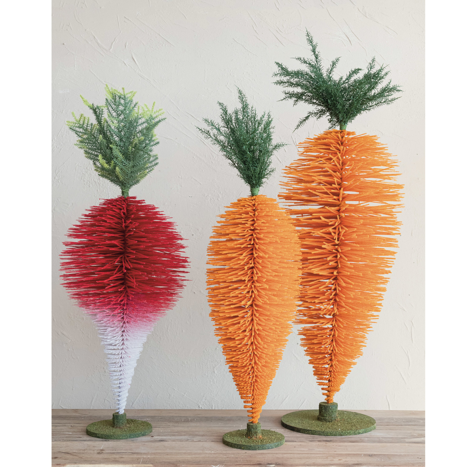 Catalog Name: 46-1/2"H Flocked Bottle Brush Standing Carrot w/ Faux Moss Finish MDF Base, Green & Orange Color