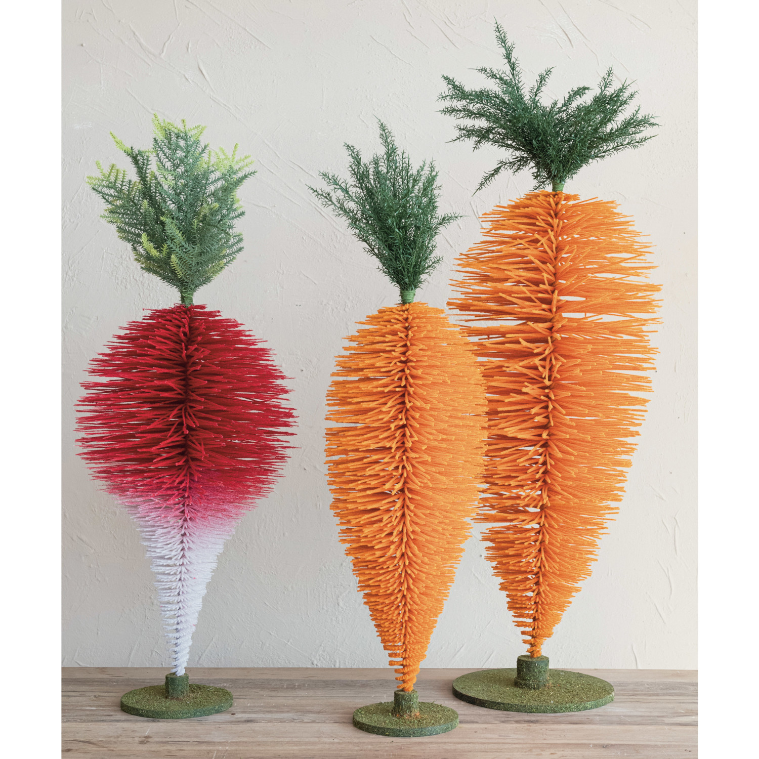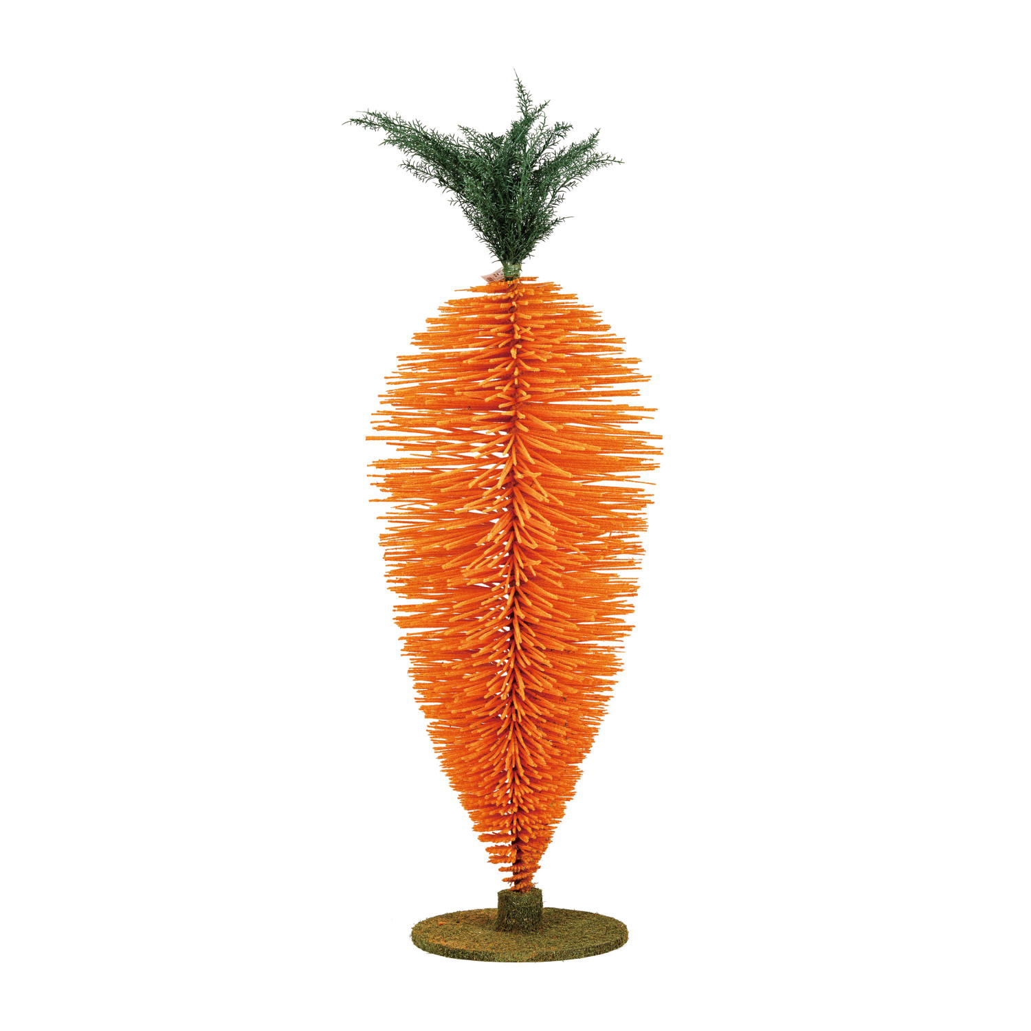 Flocked Bottle Brush Standing Carrot w/ Faux Moss Finish MDF Base