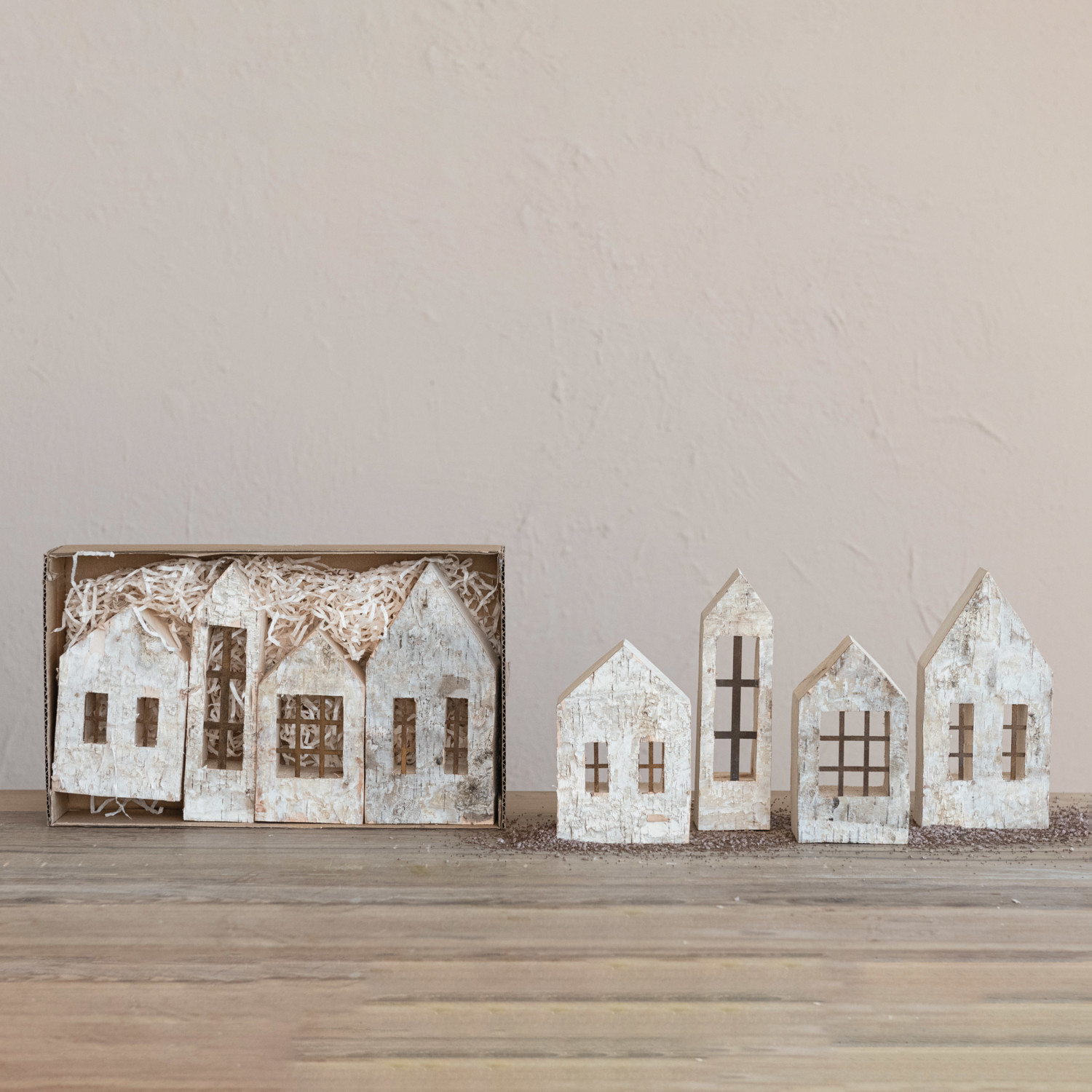 Birch Bark Houses w/ Windows, Natural, Boxed Set of 4