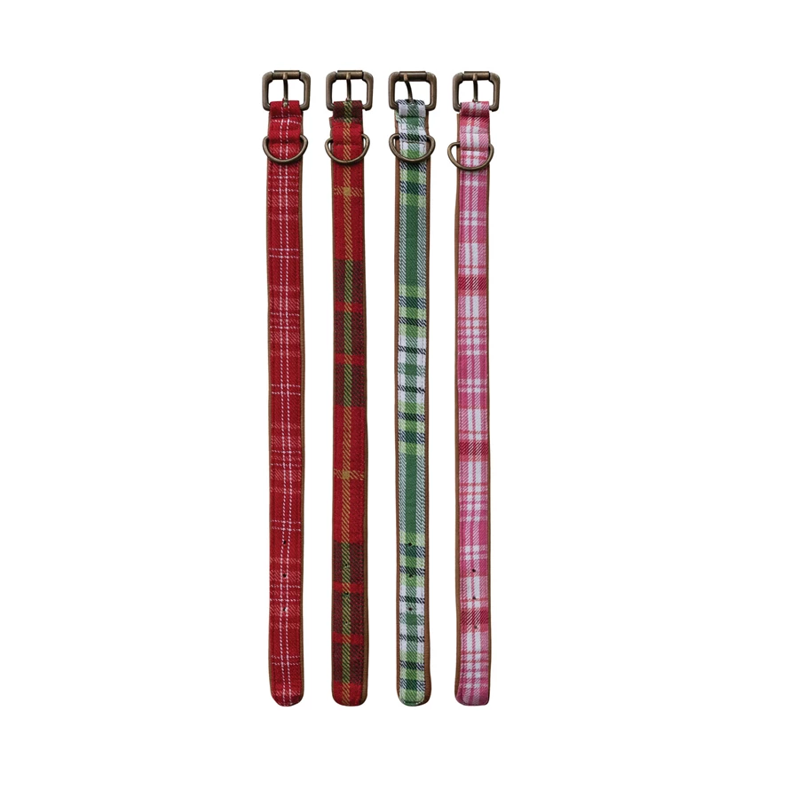 Catalog Name: 15-1/2"L x 1"W Cotton Flannel & Leather Dog Collar w/ Tartan Plaid Pattern & Metal Buckle, Multi Color, 4 Styles, Extra Small (Each One Will Vary)