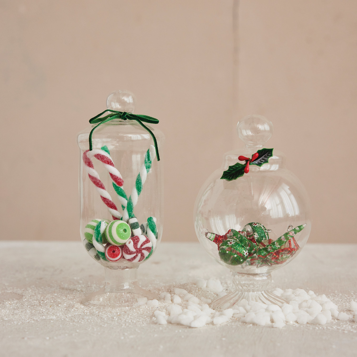 Glass Candy Jar Décor with Bow & Faux Candy Inside, 2 Styles