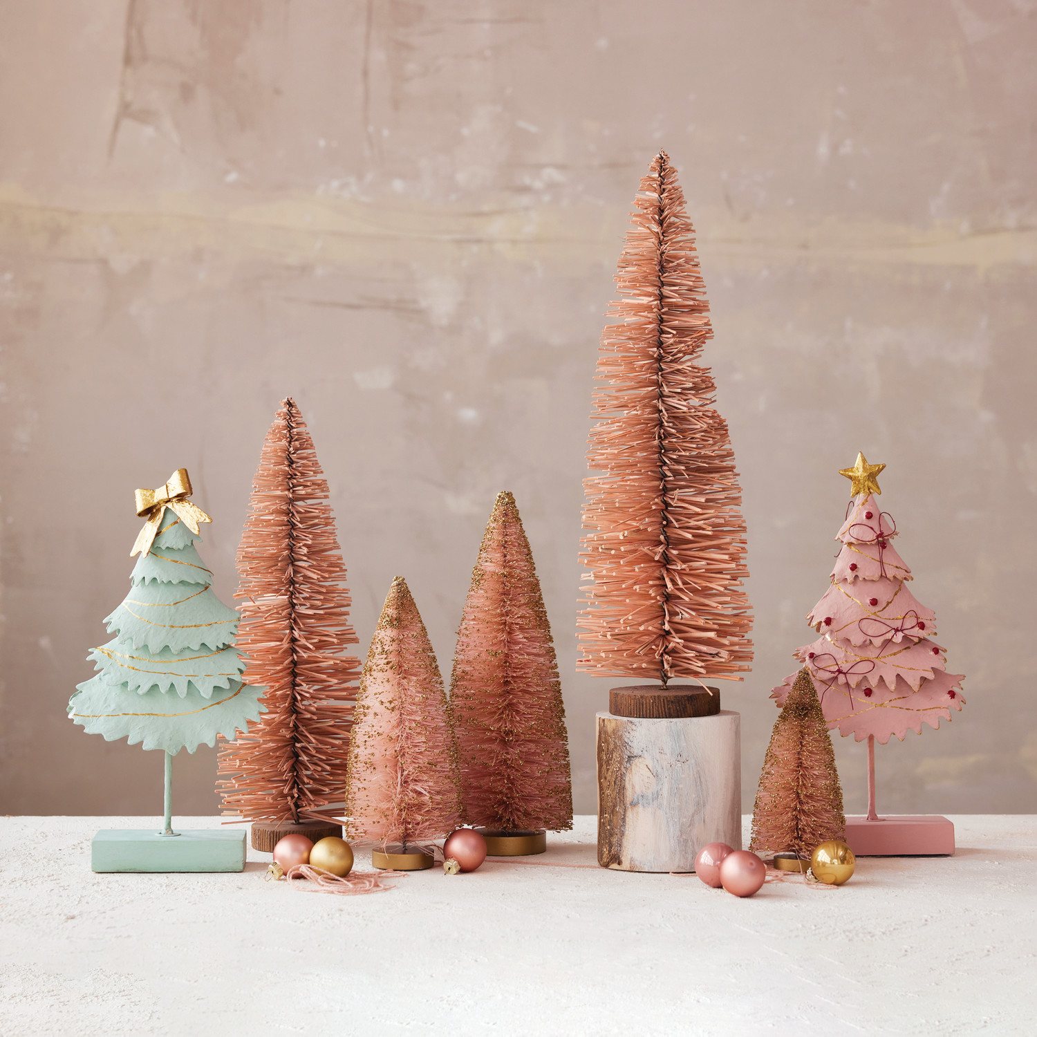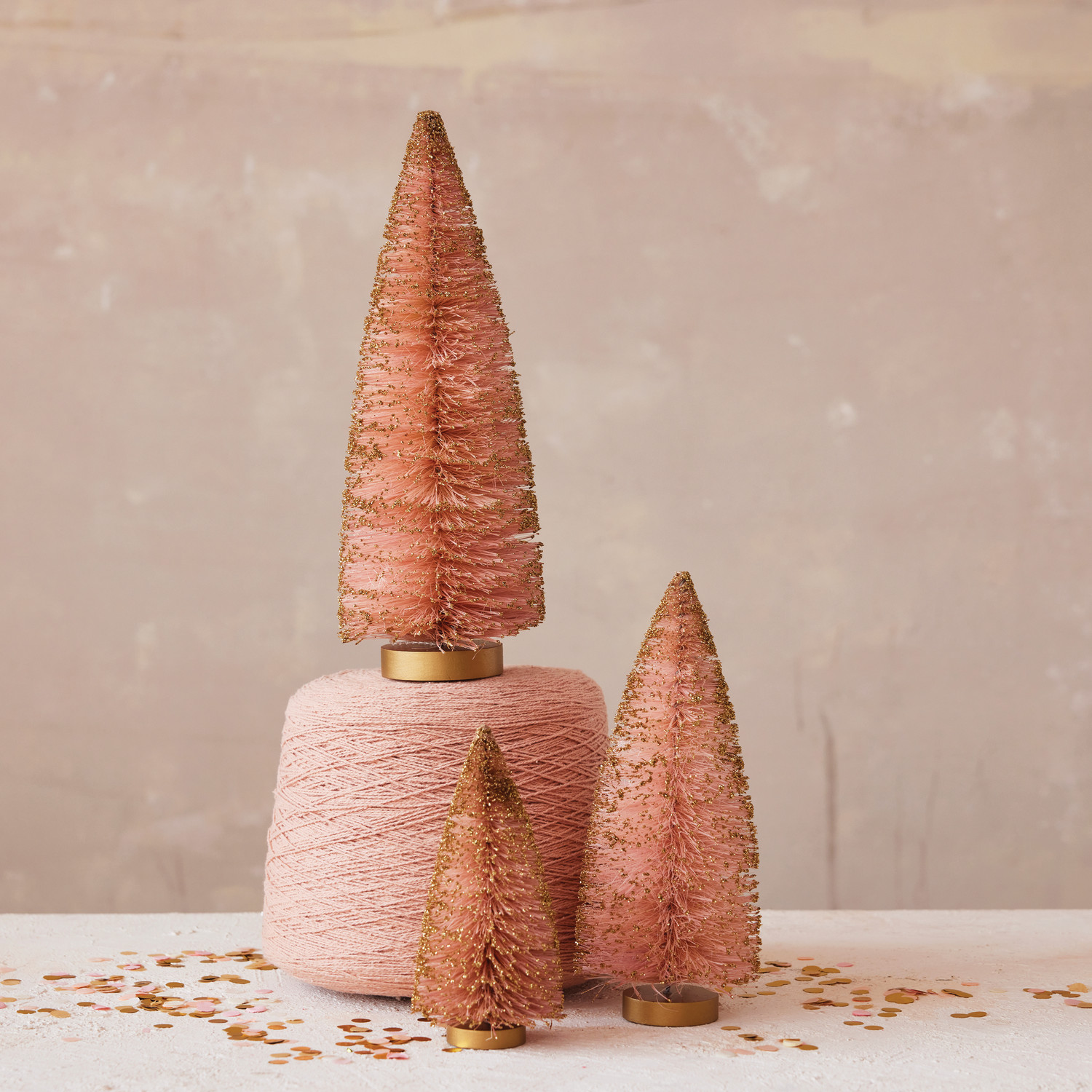 Catalog Name: 4" Round x 9"H Sisal Bottle Brush Tree w/ Glitter, Pink
