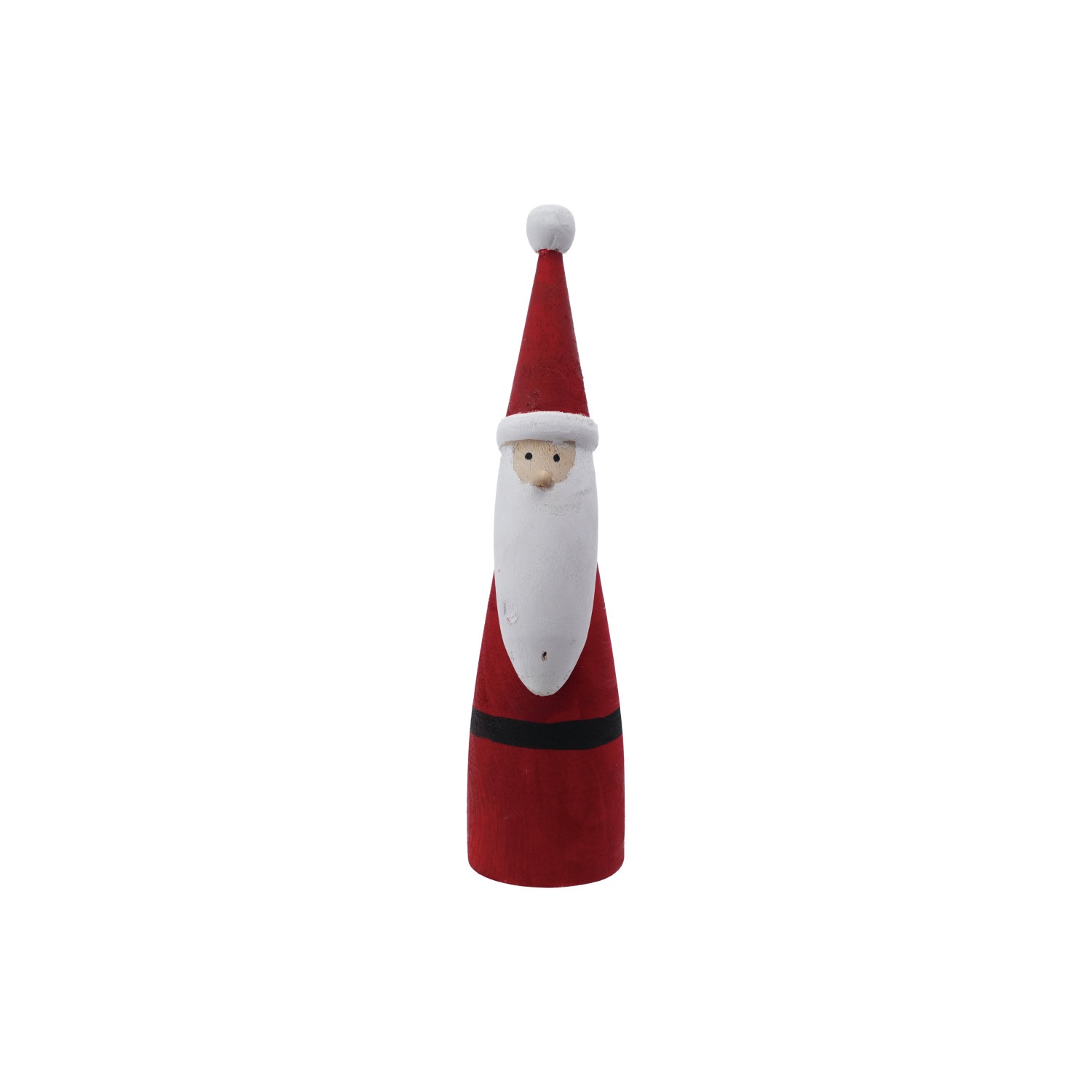 Catalog Name: 2-3/4" Round x 11"H Hand-Carved Paulownia Wood Santa, Red & White
