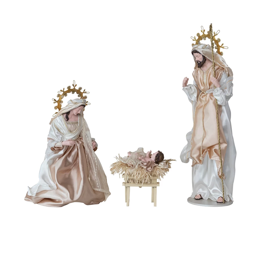 Catalog Name: 10"H - 36"H Handmade Fabric, MDF & Resin Holy Family, Multi Color, Set of 3, Truck Ship