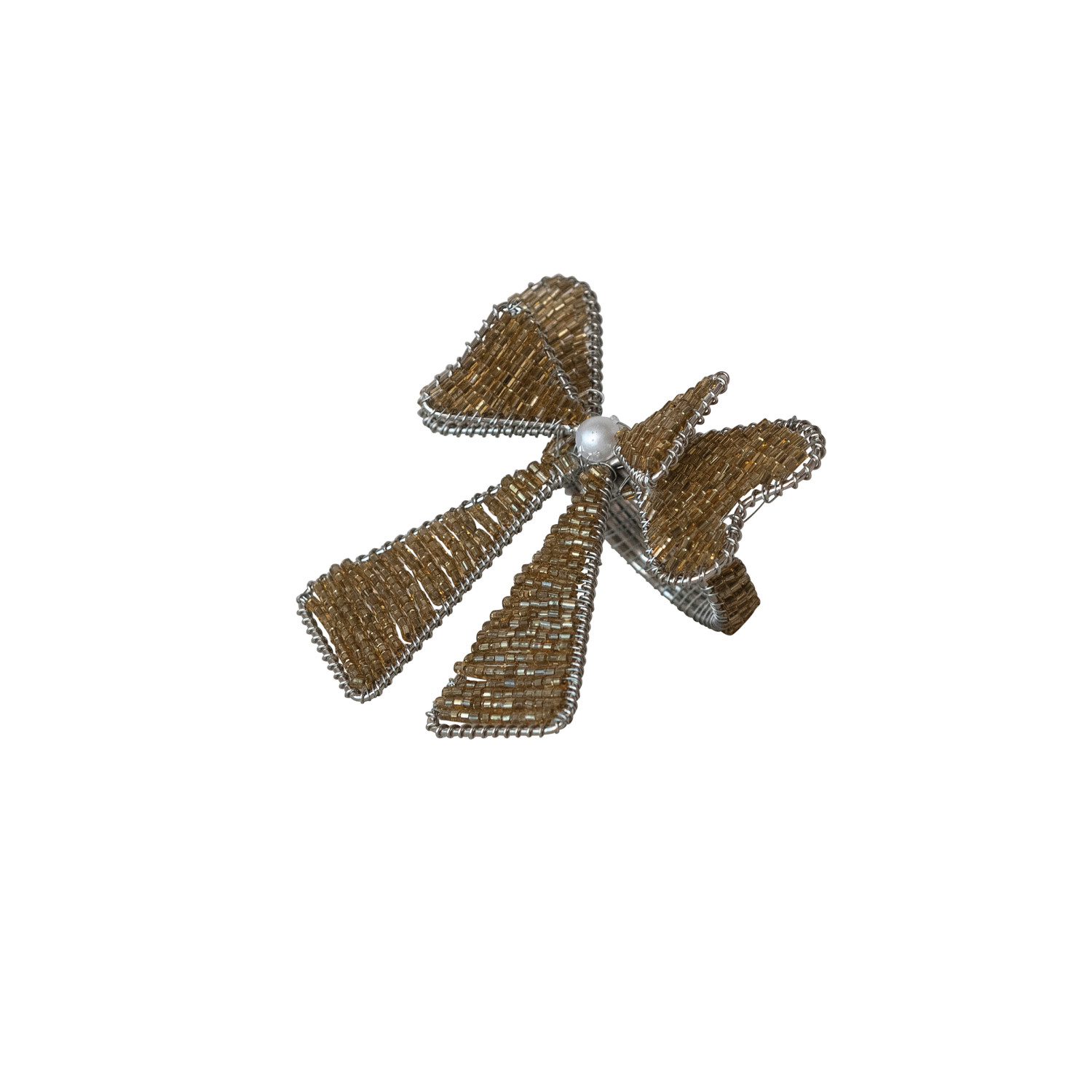 Handmade Metal & Glass Beaded Bow Shaped Napkin Rings, Set of 4 Tied with Gold Cord