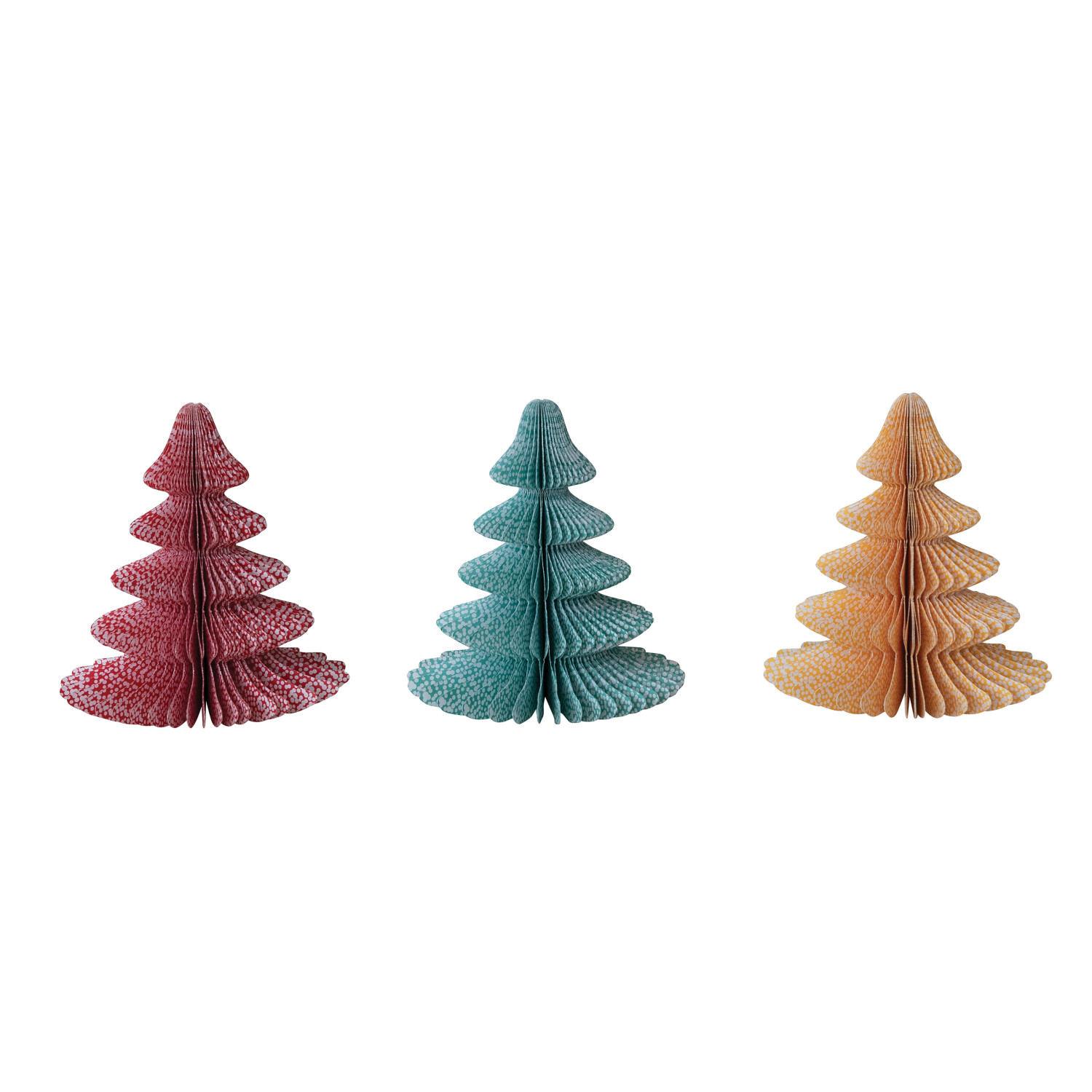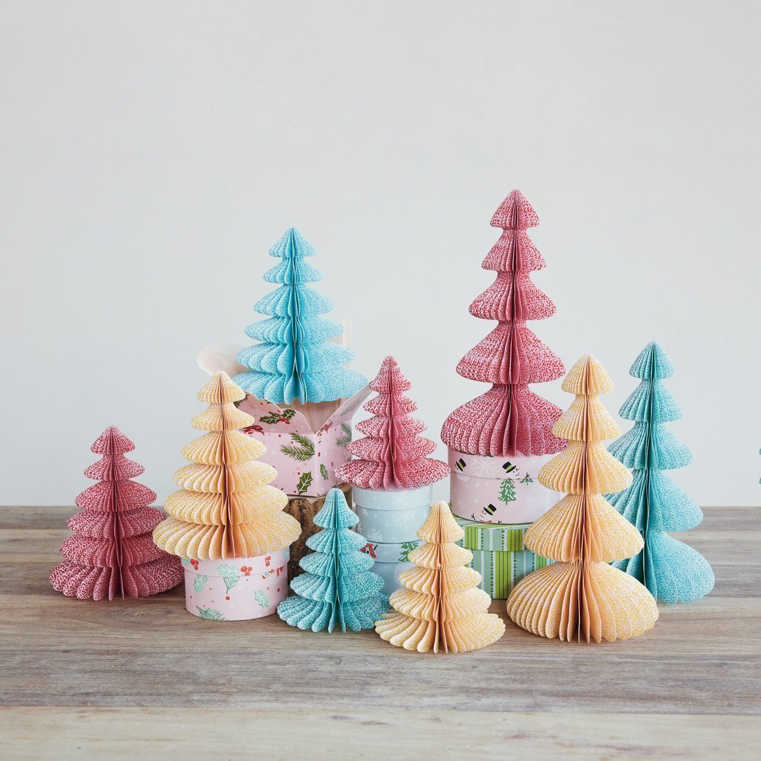 Handmade Printed Recycled Paper Folding Honeycomb Tree with Dot Pattern, 3 Colors
