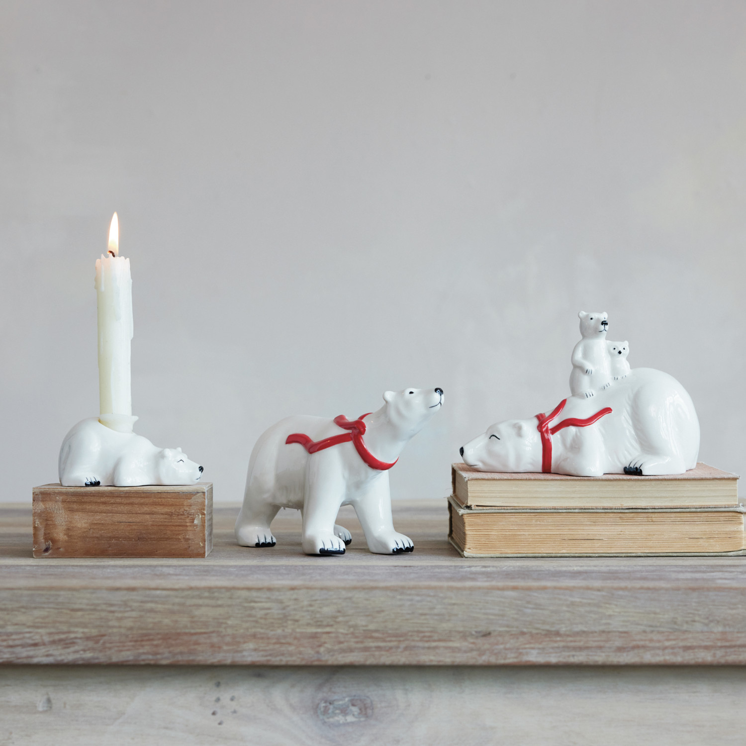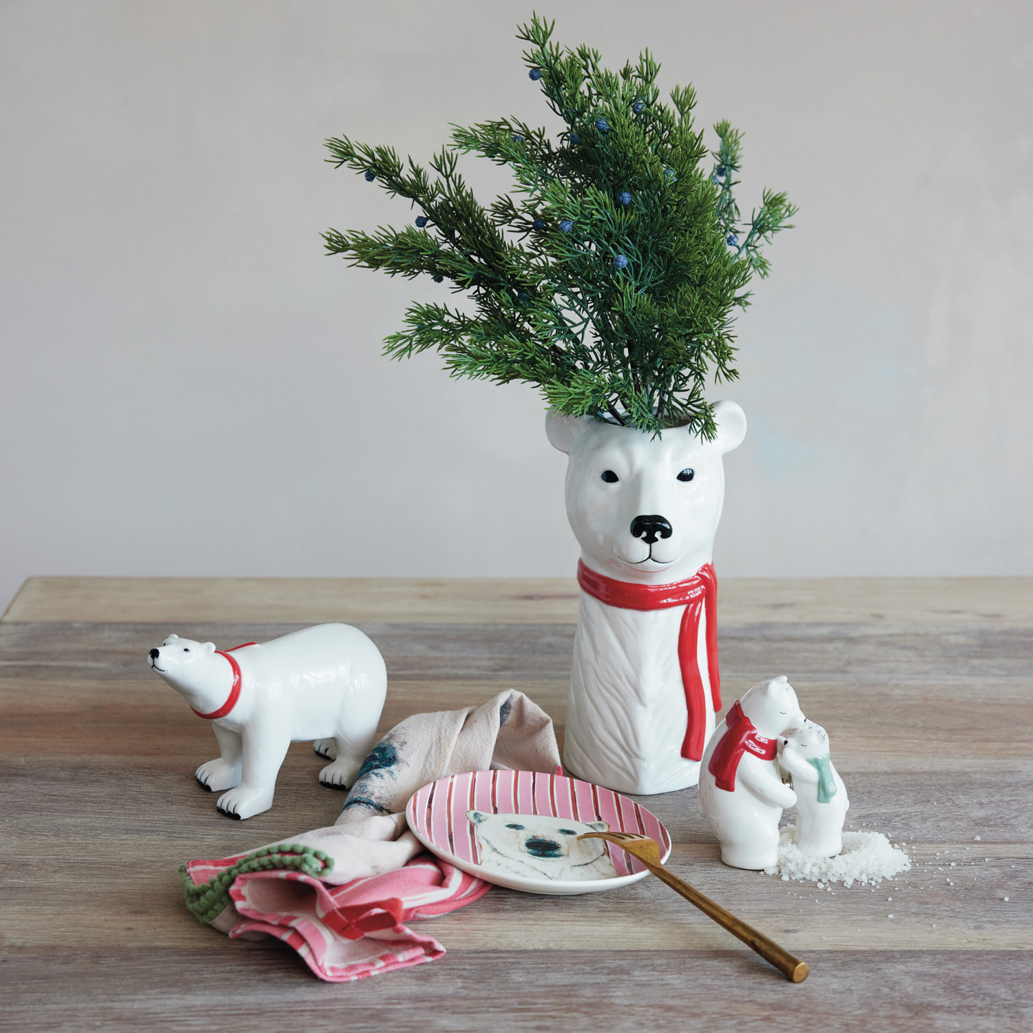 Stoneware Polar Bear with Scarf, White, Red & Black