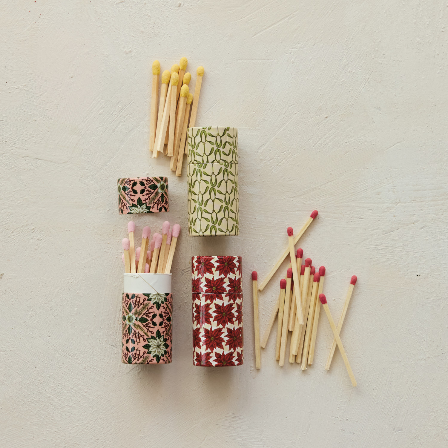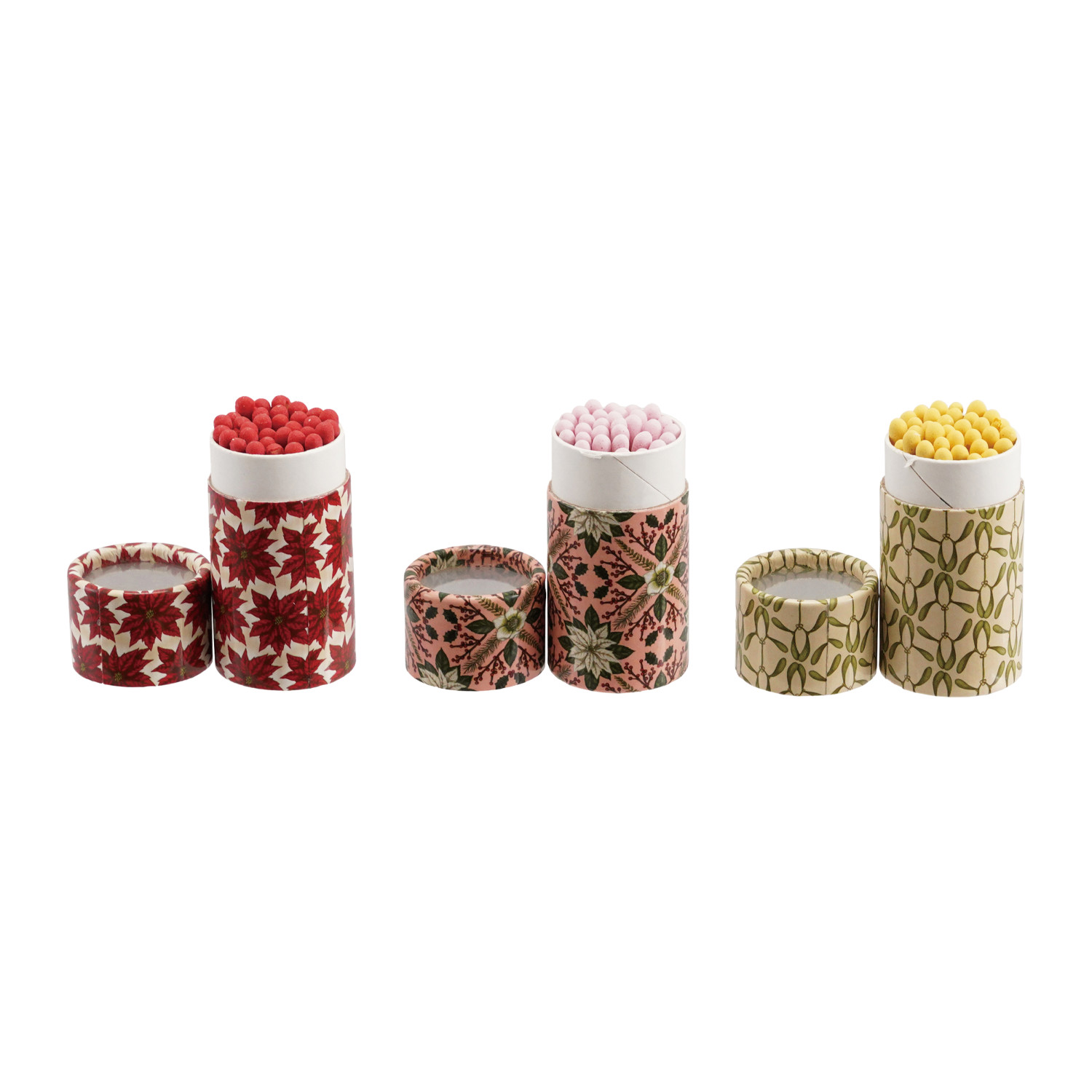 Safety Matches in Tube Matchbox with Seasonal Botanical Pattern, 3 Styles ©