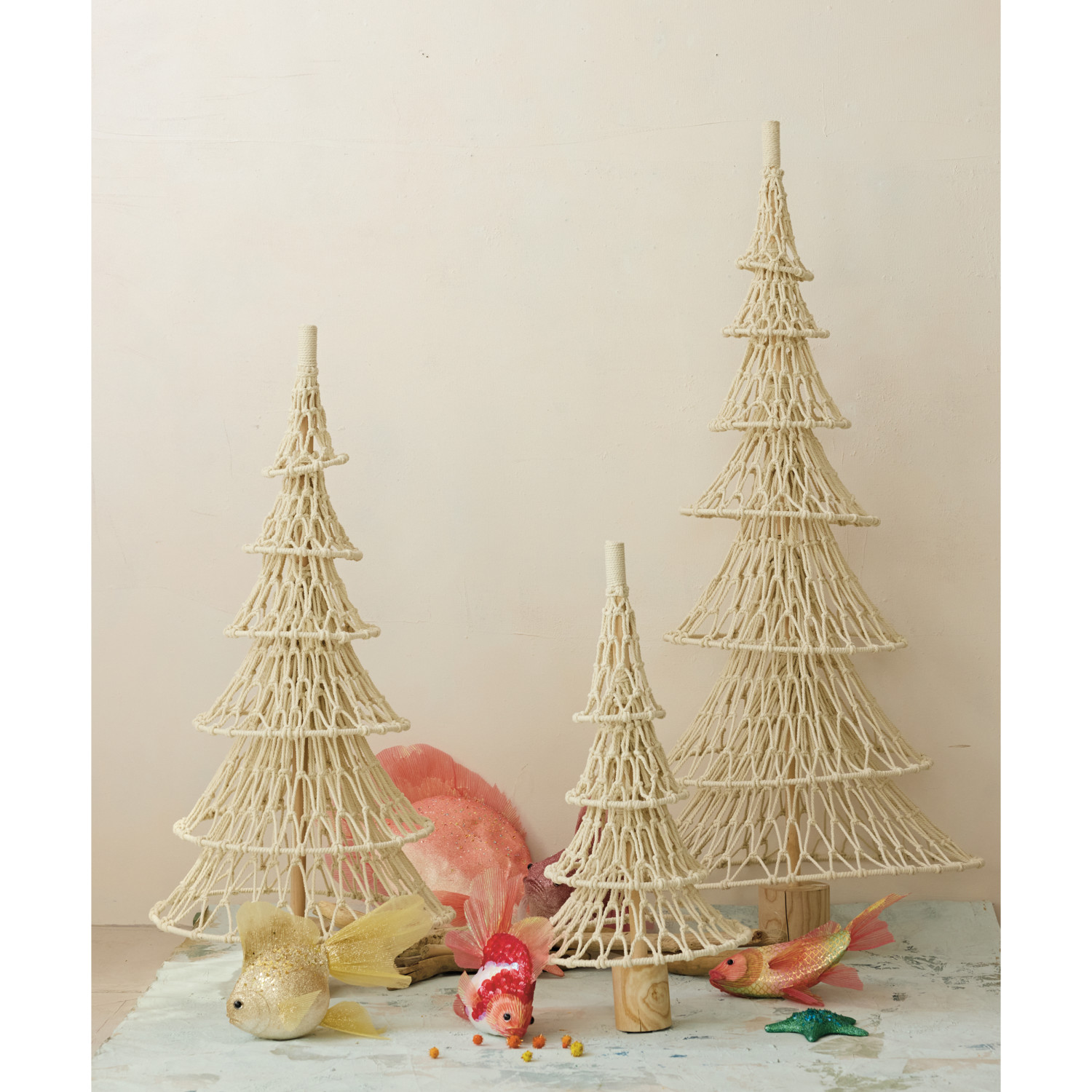 Catalog Name: 13-3/4" Round x 29-1/2"H Fabric Rope Net & Birch Wood Tree, Natural
