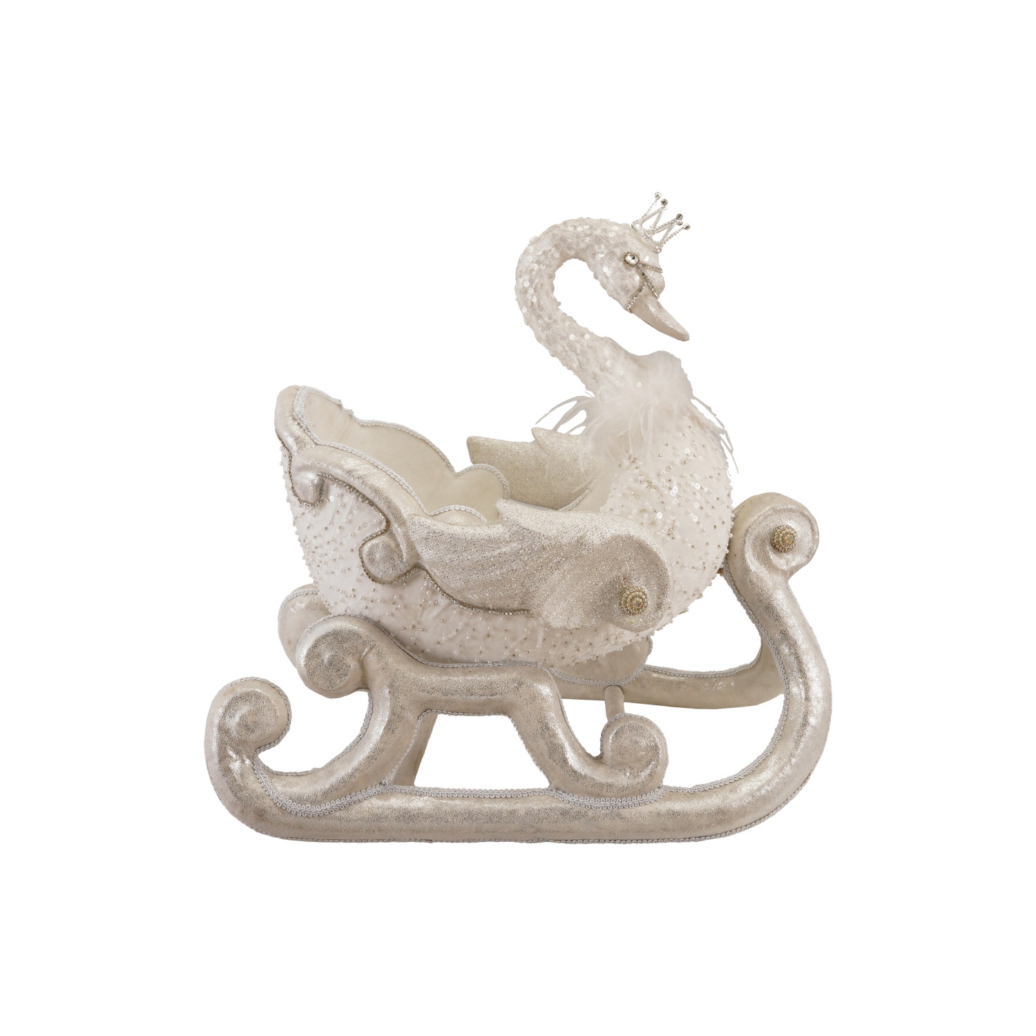 Catalog Name: 20-1/2"L x 12-1/2"W x 20-1/2"H Foam & Fabric Swan Shaped Sleigh w/ Glitter, Sequins & Feathers, White, Truck Ship