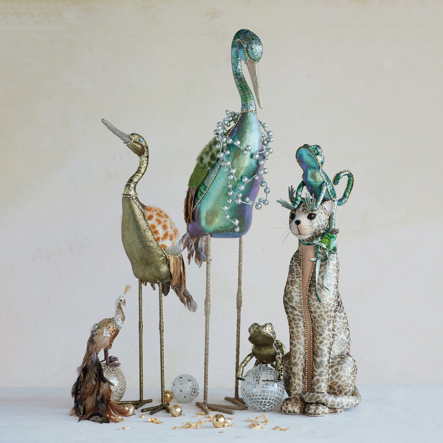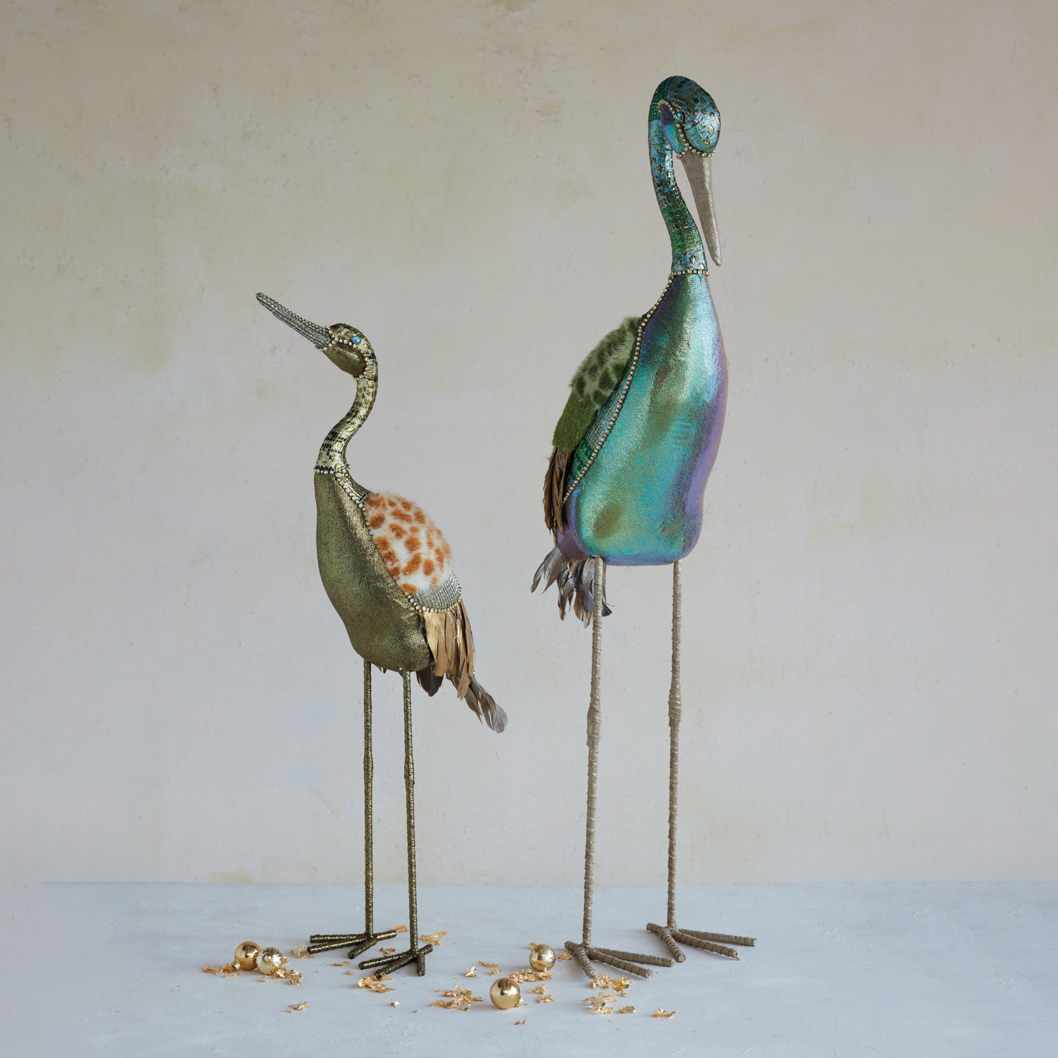Catalog Name: 18-1/2"L x 9"W x 32"H Foam & Fabric Crane w/ Jewels & Feathers, Multi Color