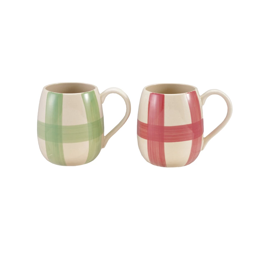 Catalog Name: 4" Round x 4-1/4"H 16 oz. Hand-Painted Stoneware Mug w/ Plaid Pattern, 2 Colors (Each One Will Vary)