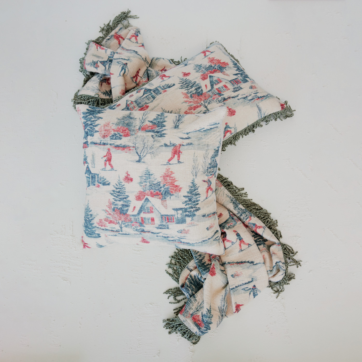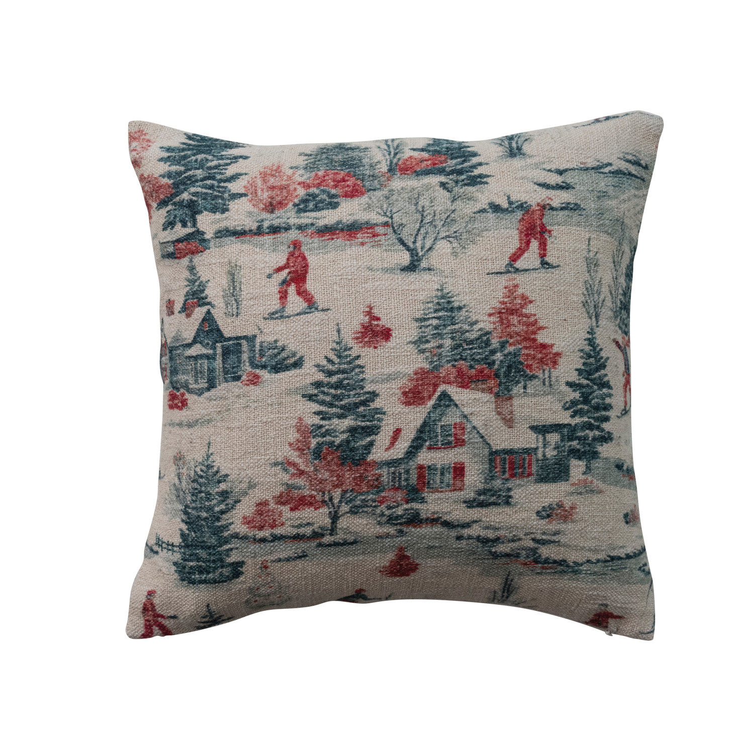 Catalog Name: 20" Square Cotton Slub Printed Pillow w/ Ski Scene, Multi Color