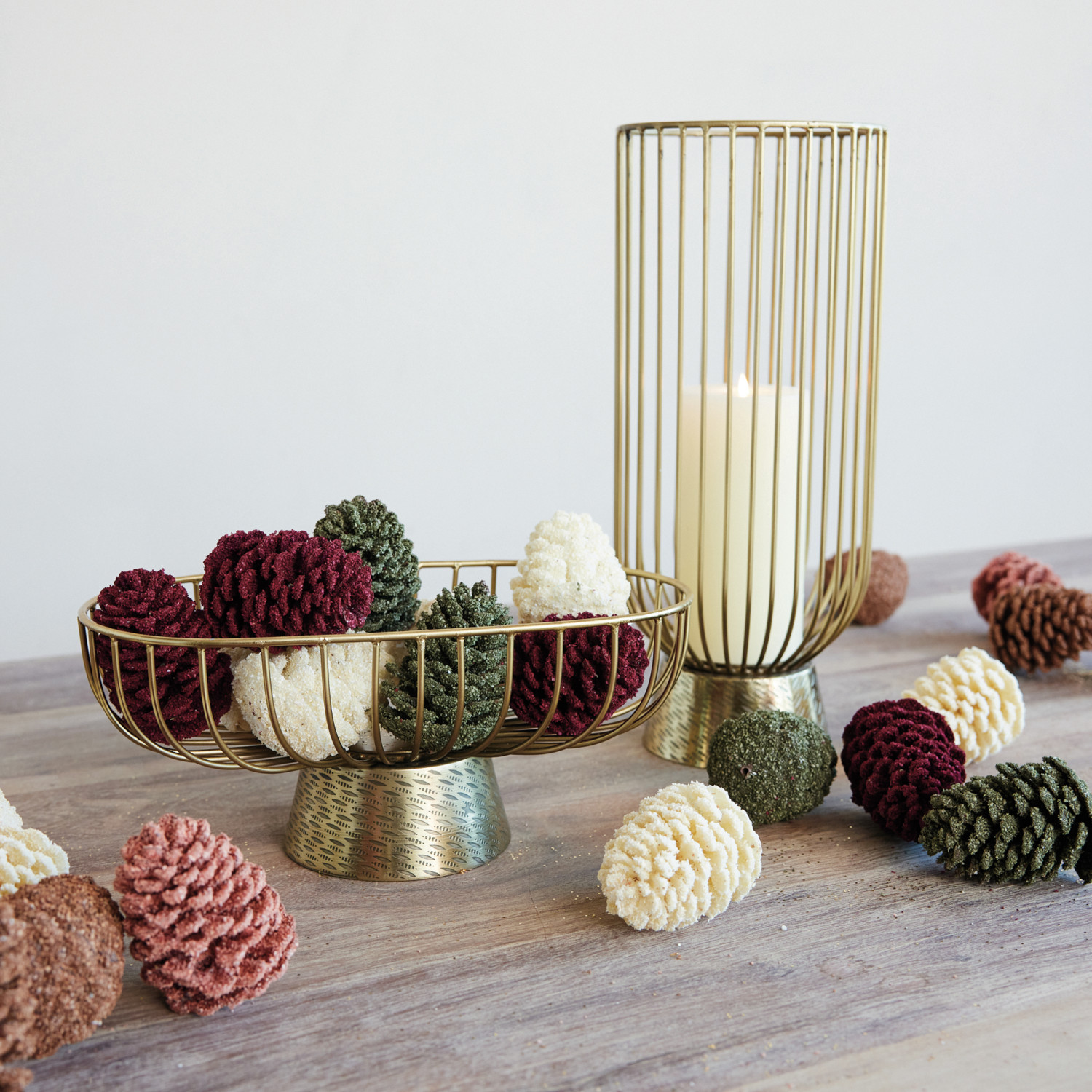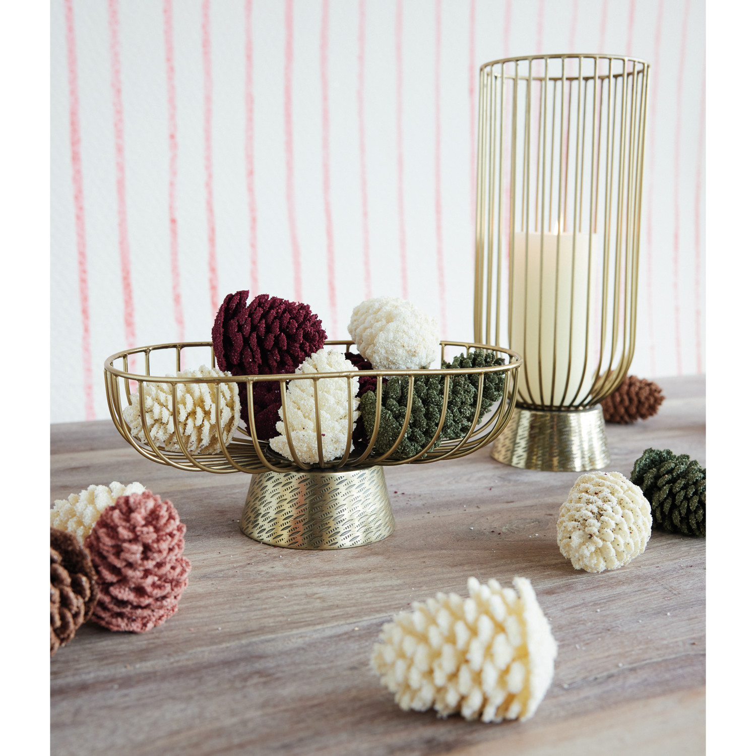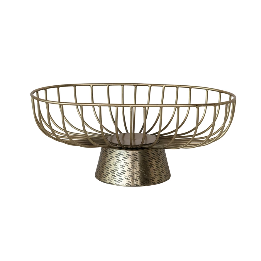 Decorative Embossed Metal Wire Footed Bowl, Gold Finish